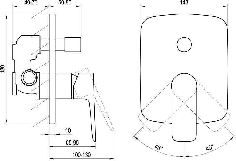 Смеситель для душа Ravak Classic CL 065.00 внешняя и внутренняя часть хром (X070088)