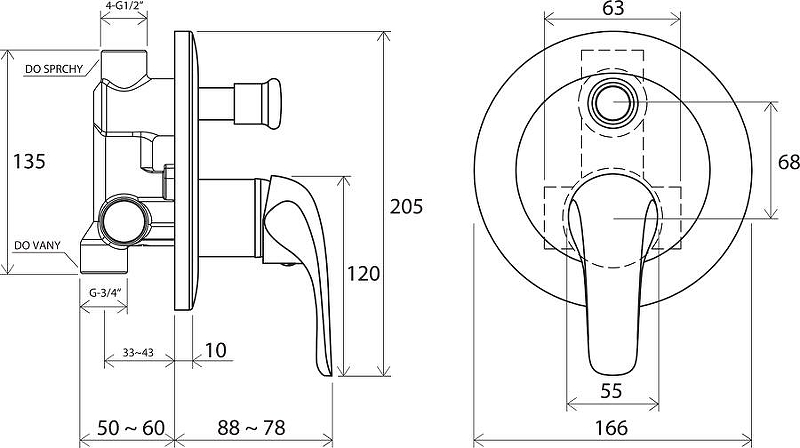 Смеситель для душа Ravak Rosa RS 061.00 внешняя и внутренняя часть хром (X070014)