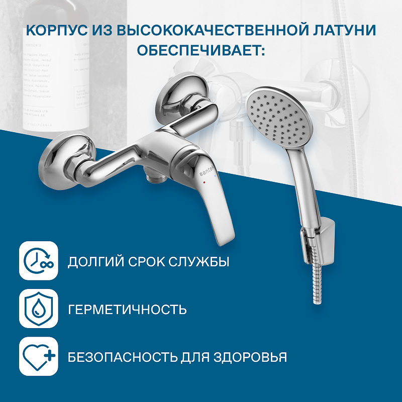 Смеситель для душа Santek Нико с душевым комплектом хром (WH5A20005C001)