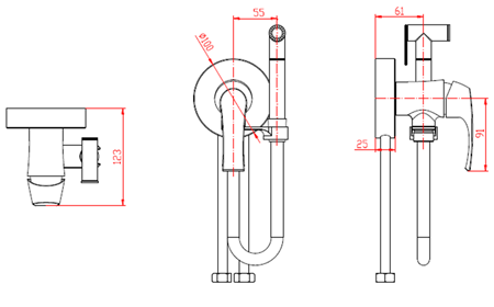 Крепится смеситель к стене, и закрывается аккуратной накладкой в диаметре 100 мм. Подводка на 600 мм, есть возможность подключить подводку любой длины.
