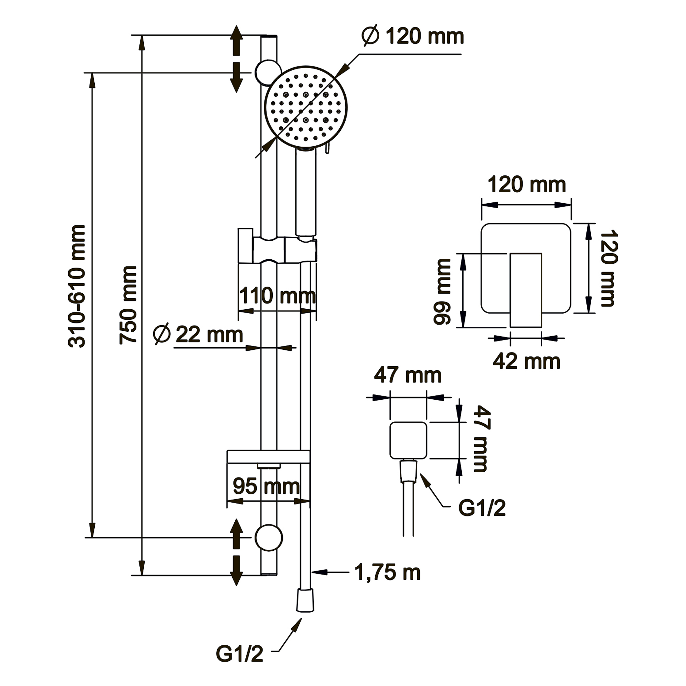 Смеситель для душа Swedbe Platta встраиваемый с душевой гарнитурой черный (5552B)