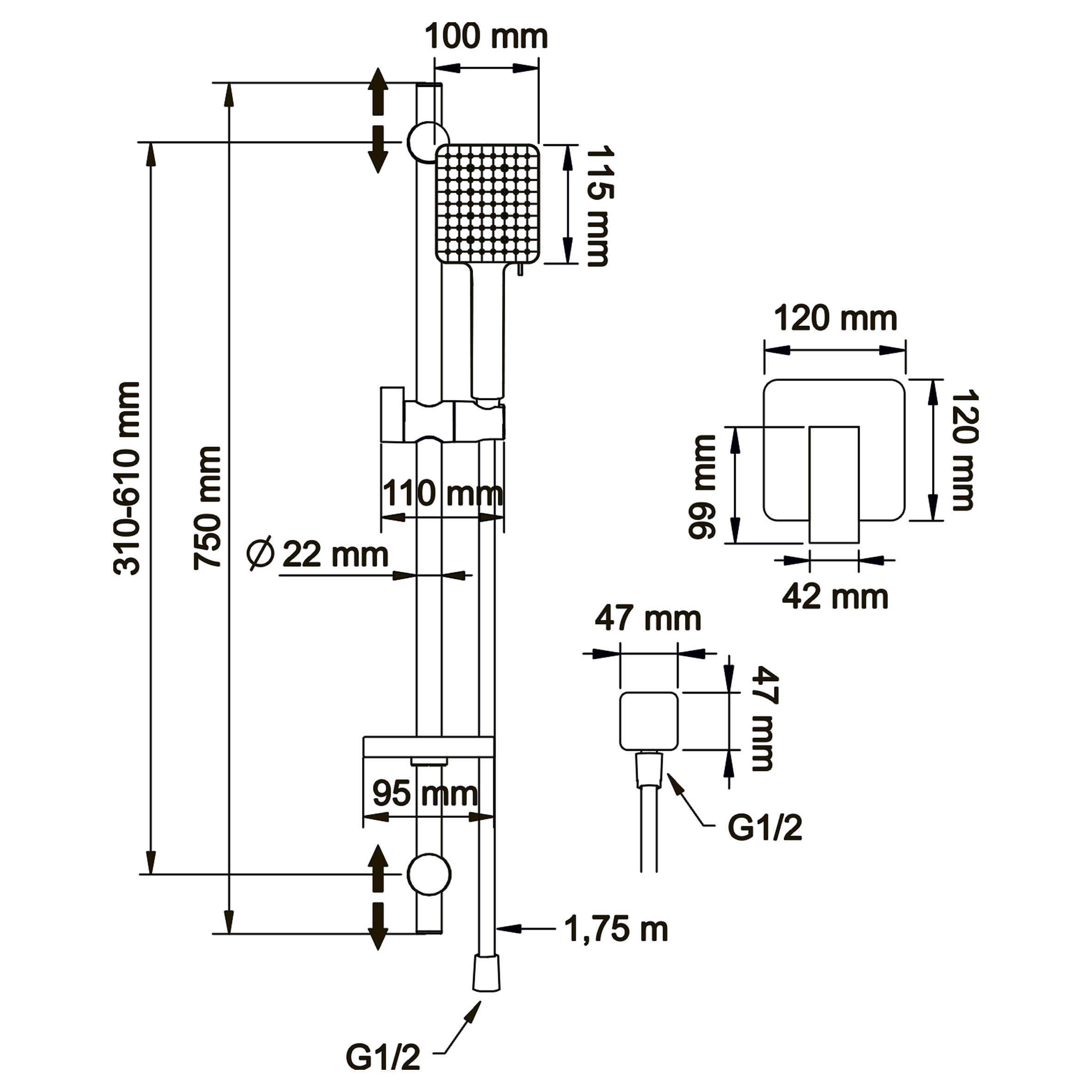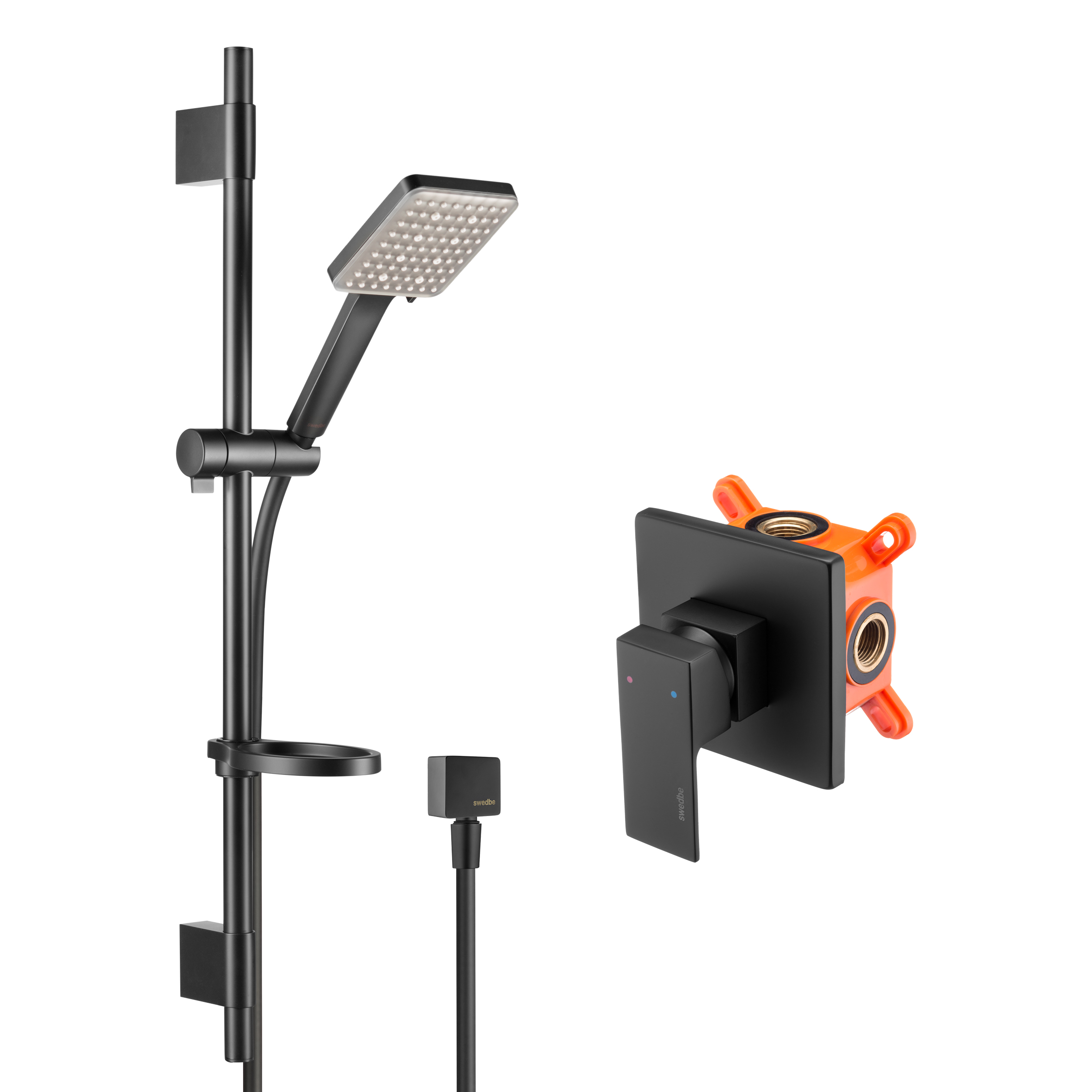 Смеситель для душа Swedbe Platta встраиваемый с душевой гарнитурой черный (5553B)