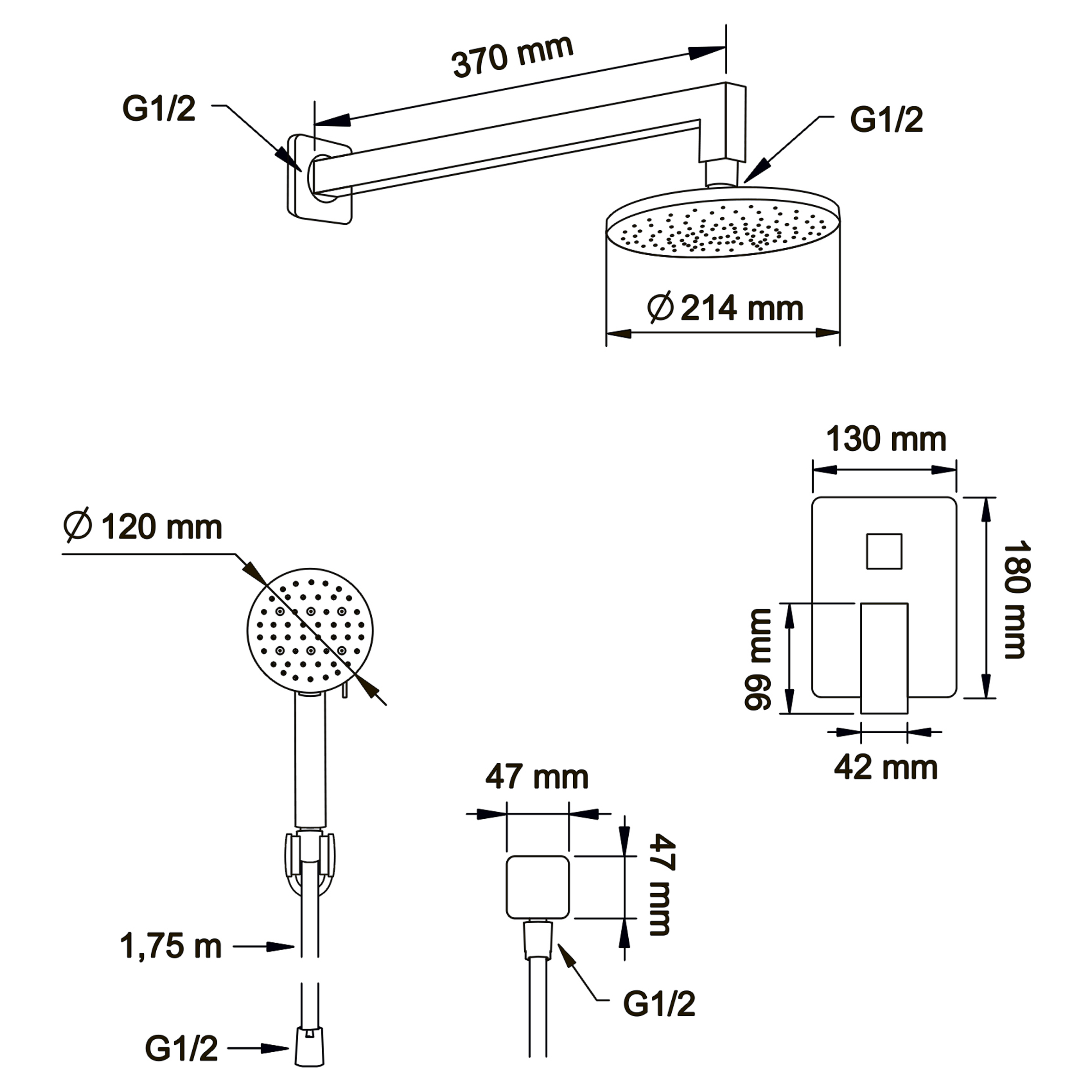 Смеситель для душа Swedbe Platta встраиваемый с верхним душем черный (5554B)
