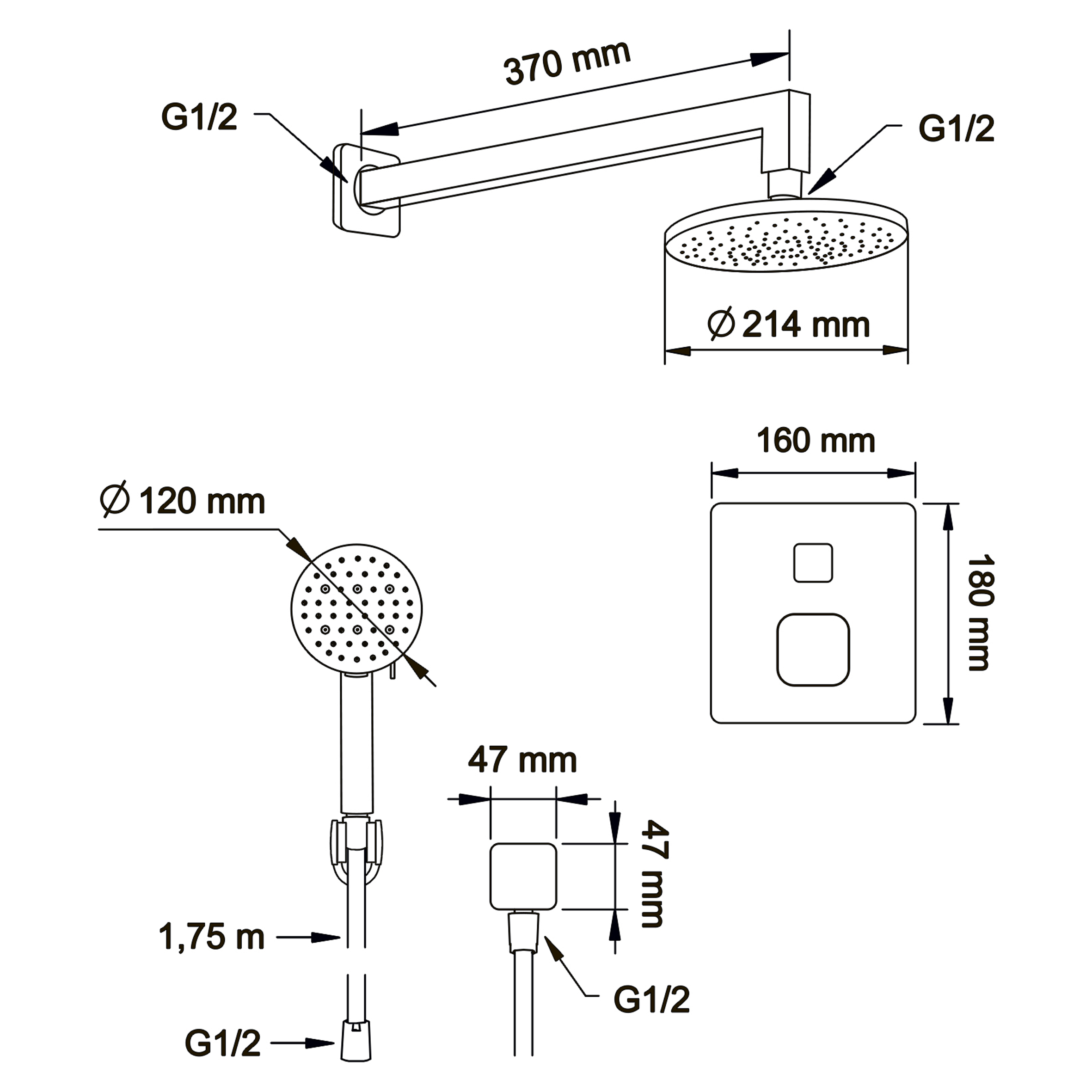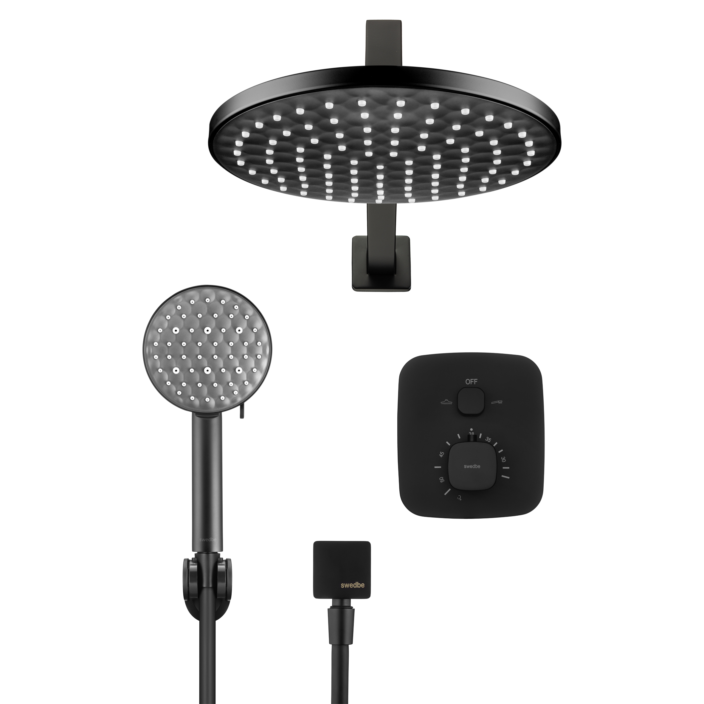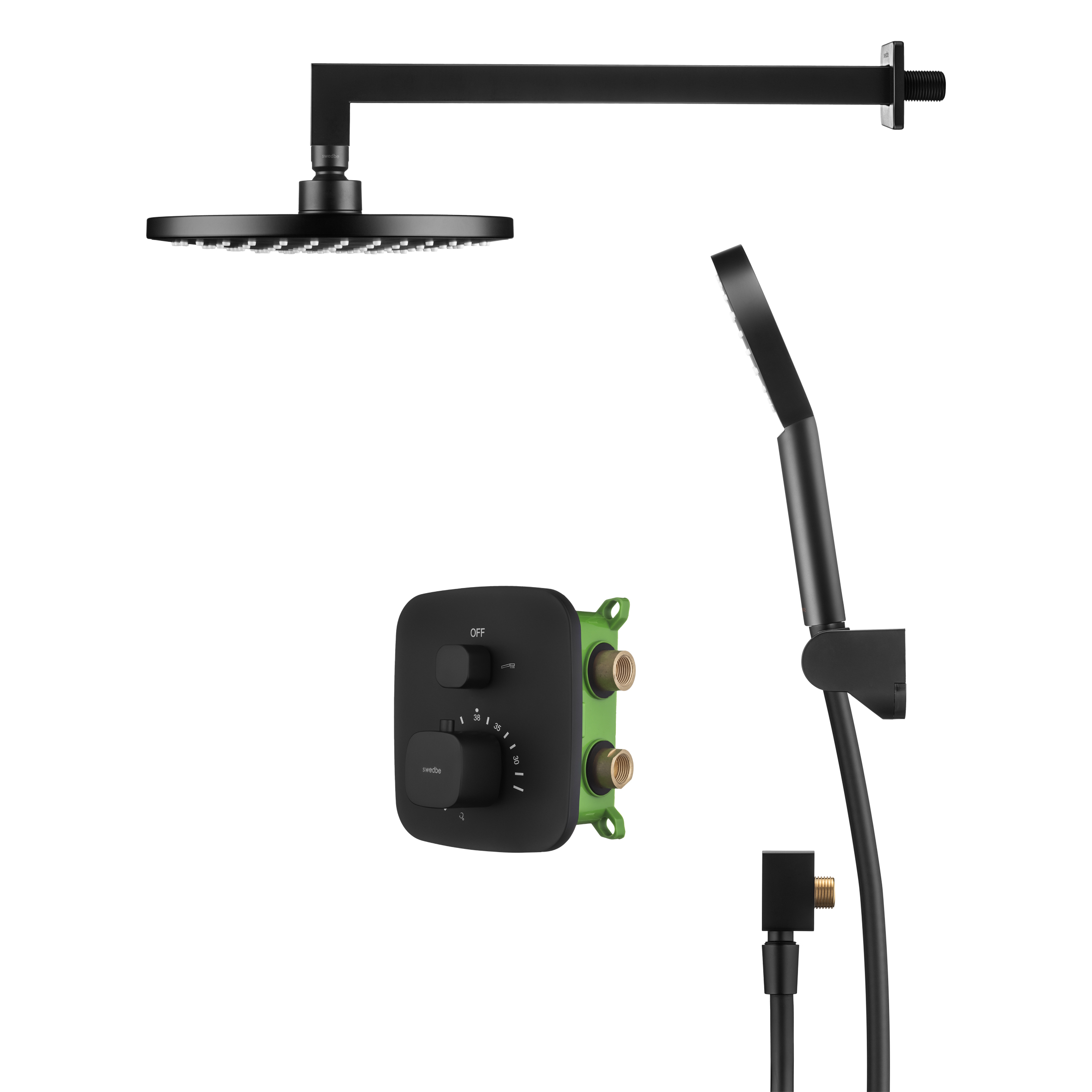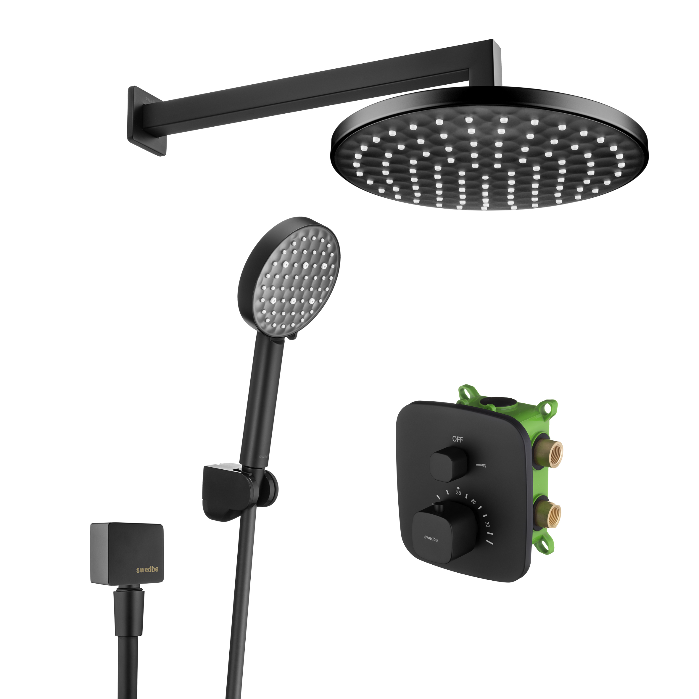Смеситель для душа Swedbe Platta встраиваемый термостат с верхним душем черный (5564B)