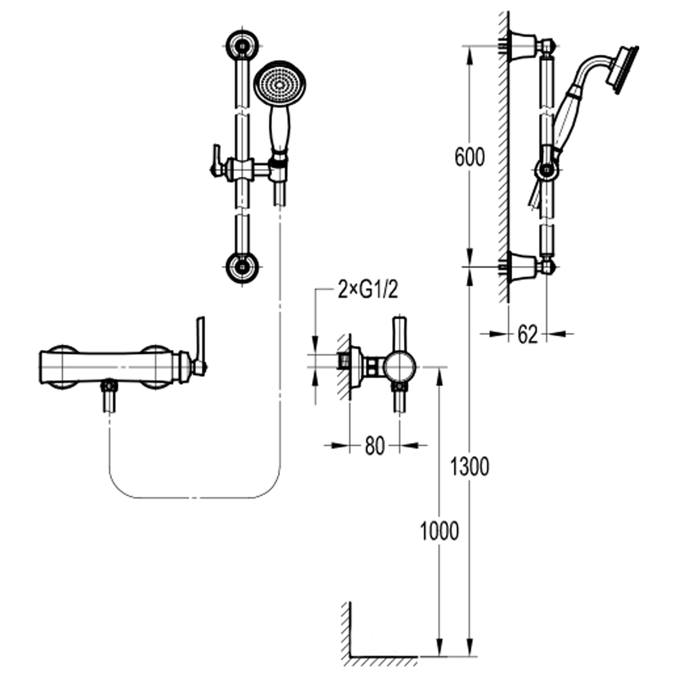 Смеситель для душа Swedbe Terracotta Art с душевым комплектом терракота (темная бронза) (2513)