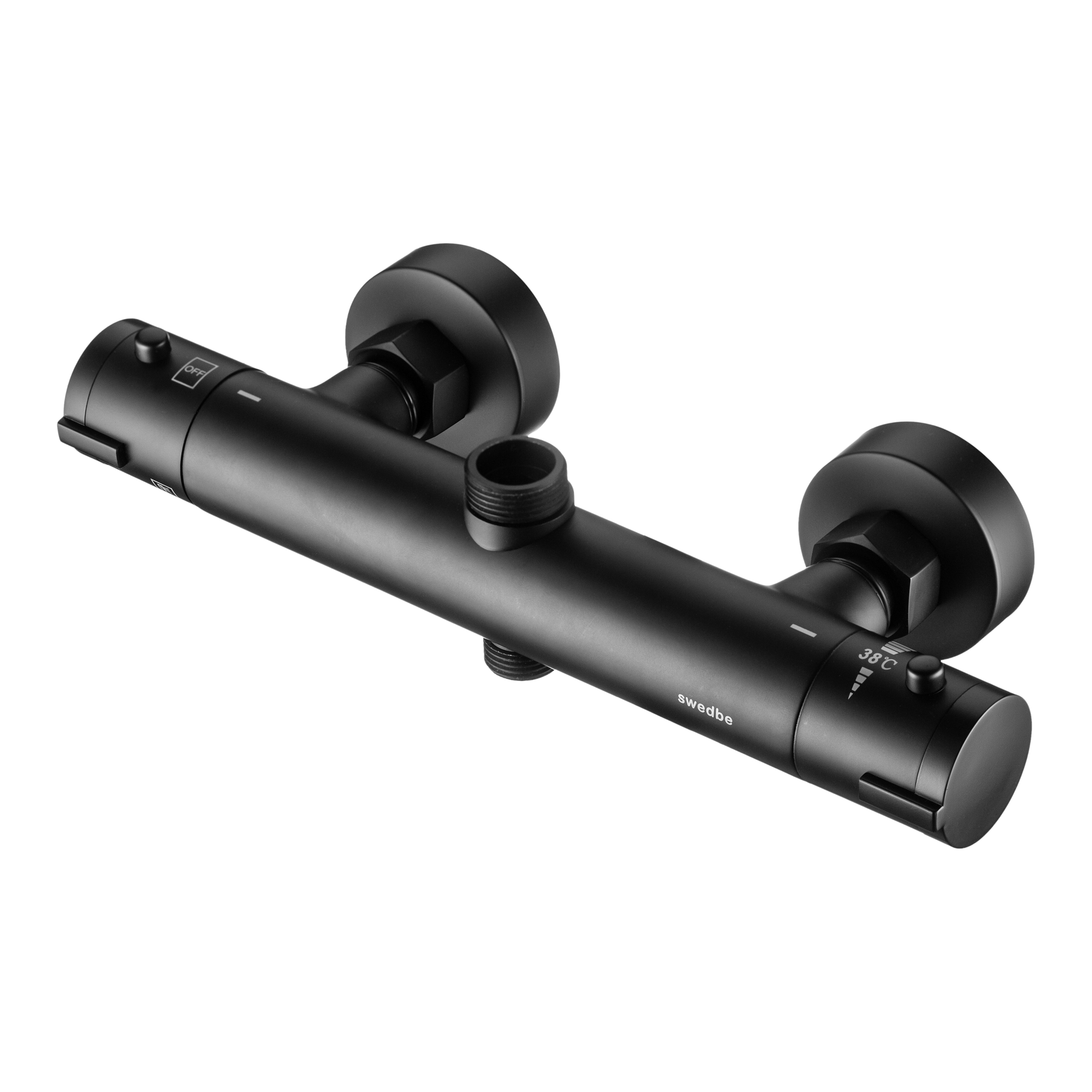 Смеситель для душа термостат с верхним подключением Swedbe Hermes черный (9022B)