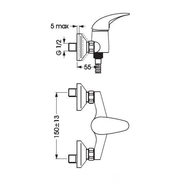 - 1-режимная лейка с функцией легкой очистки и настенным держателем, не нагревается, с режимом экономии воды до 8 л/мин (с возможностью отключения).