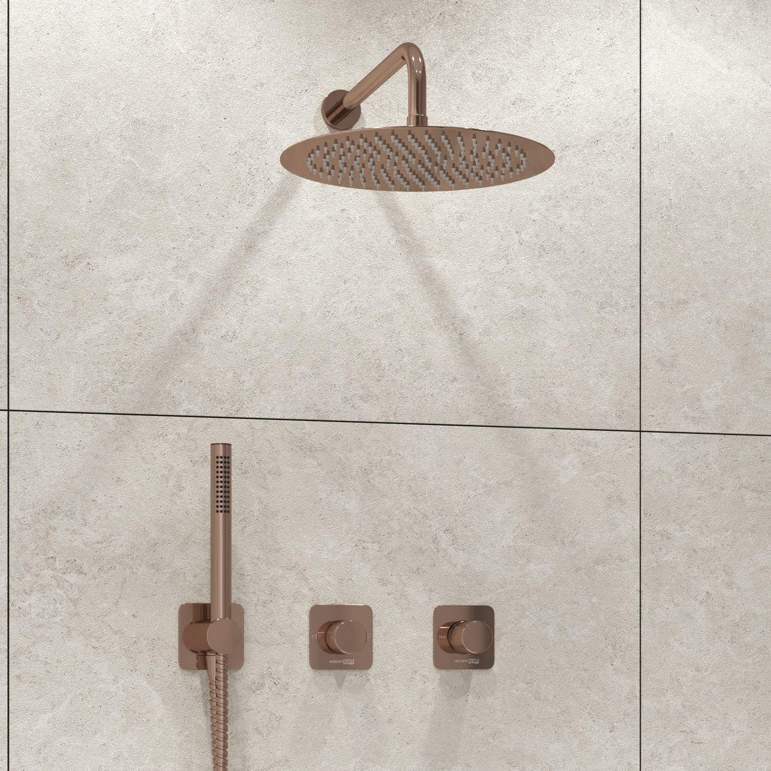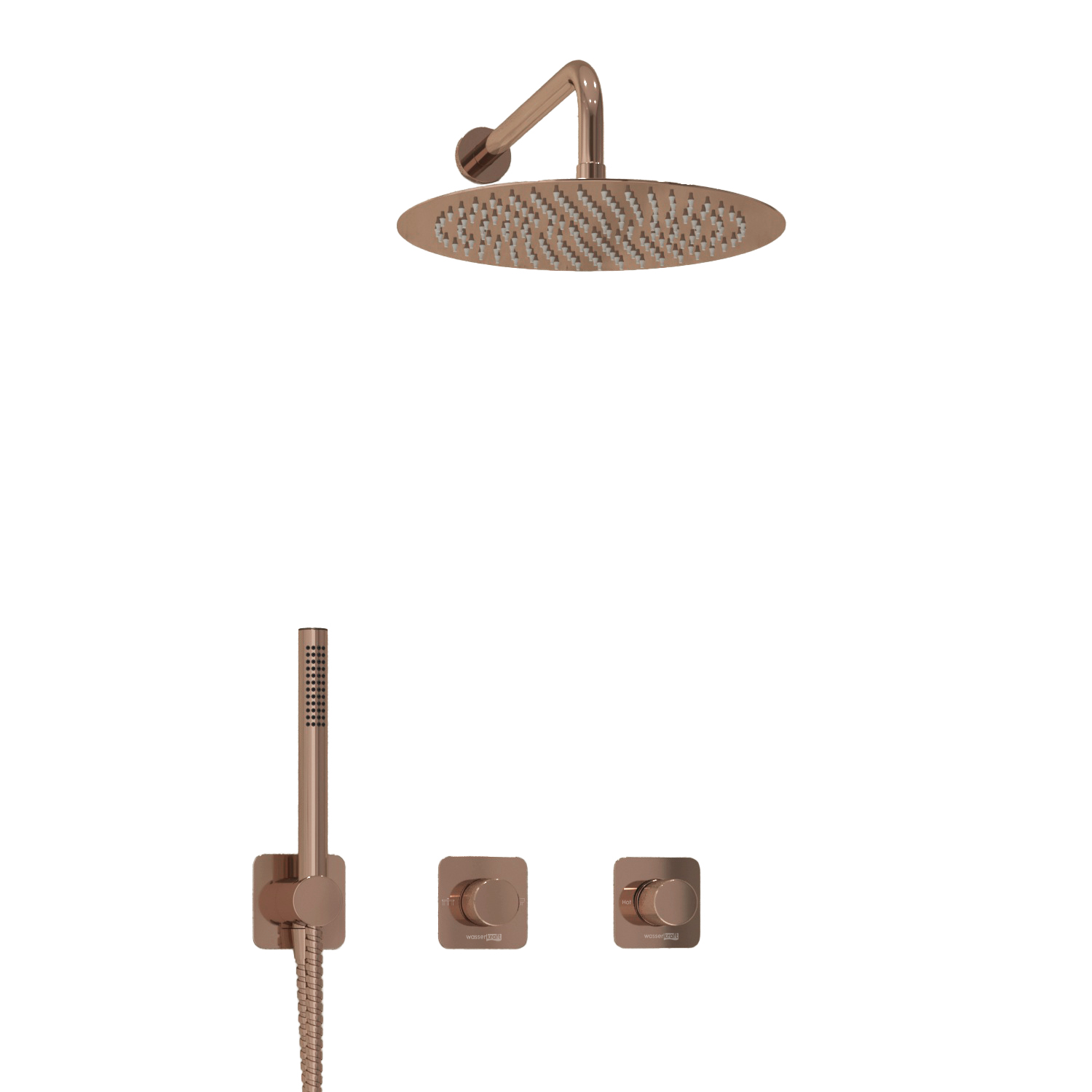 Смеситель для душа встраиваемый с верхней душевой насадкой и лейкой WasserKRAFT розовое золото (A8851.309.338.330.290.292.291)