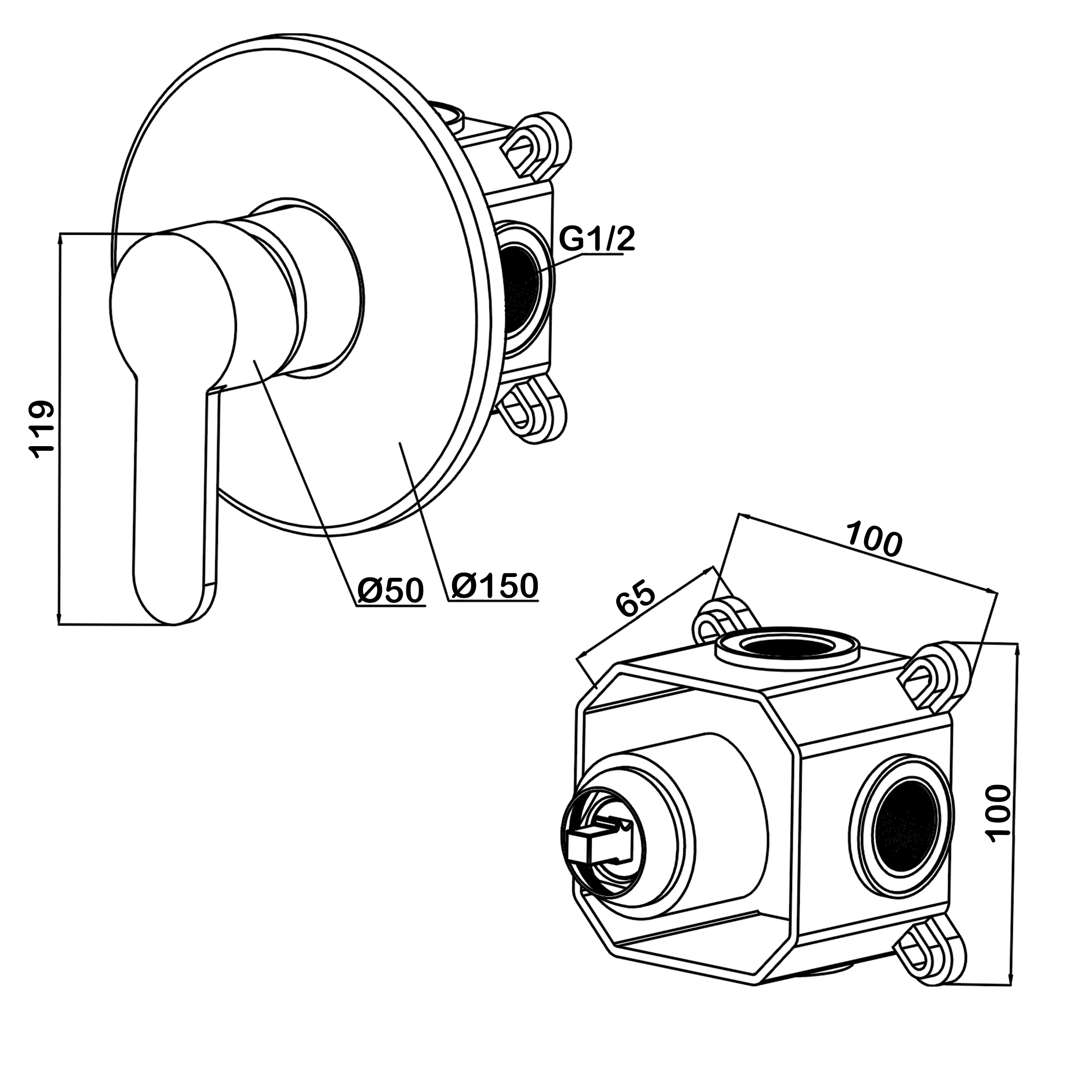 Смеситель для душа встраиваемый Swedbe Platta подключение на 1 выход в монтажном боксе хром (5523)