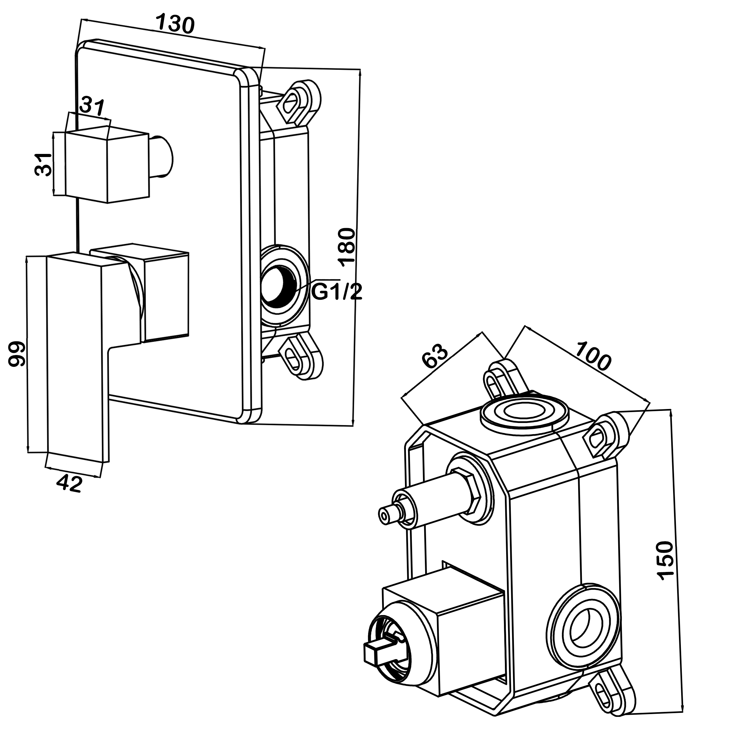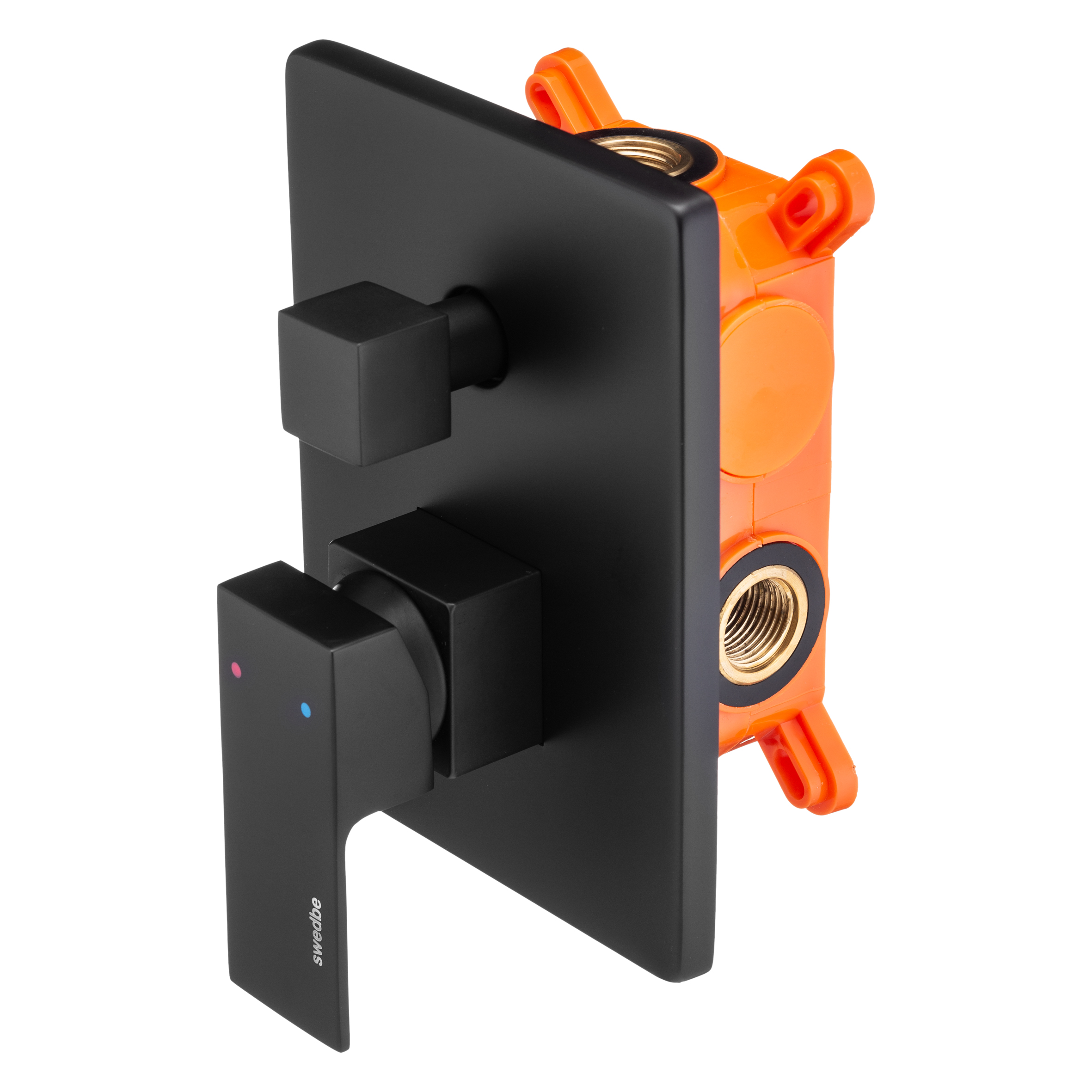 Смеситель для душа встраиваемый Swedbe Platta подключение на 2 выхода в монтажном боксе черный (5519B)