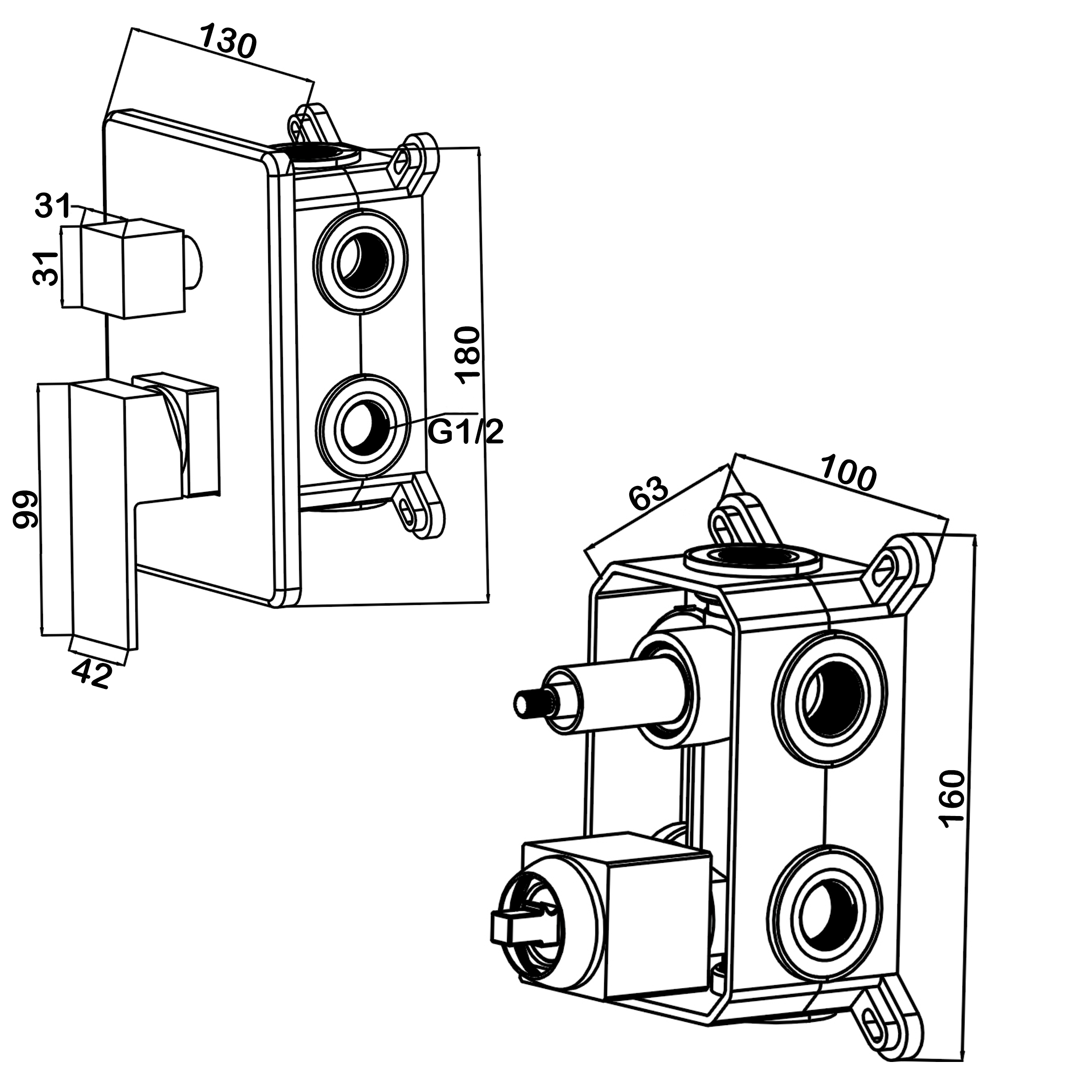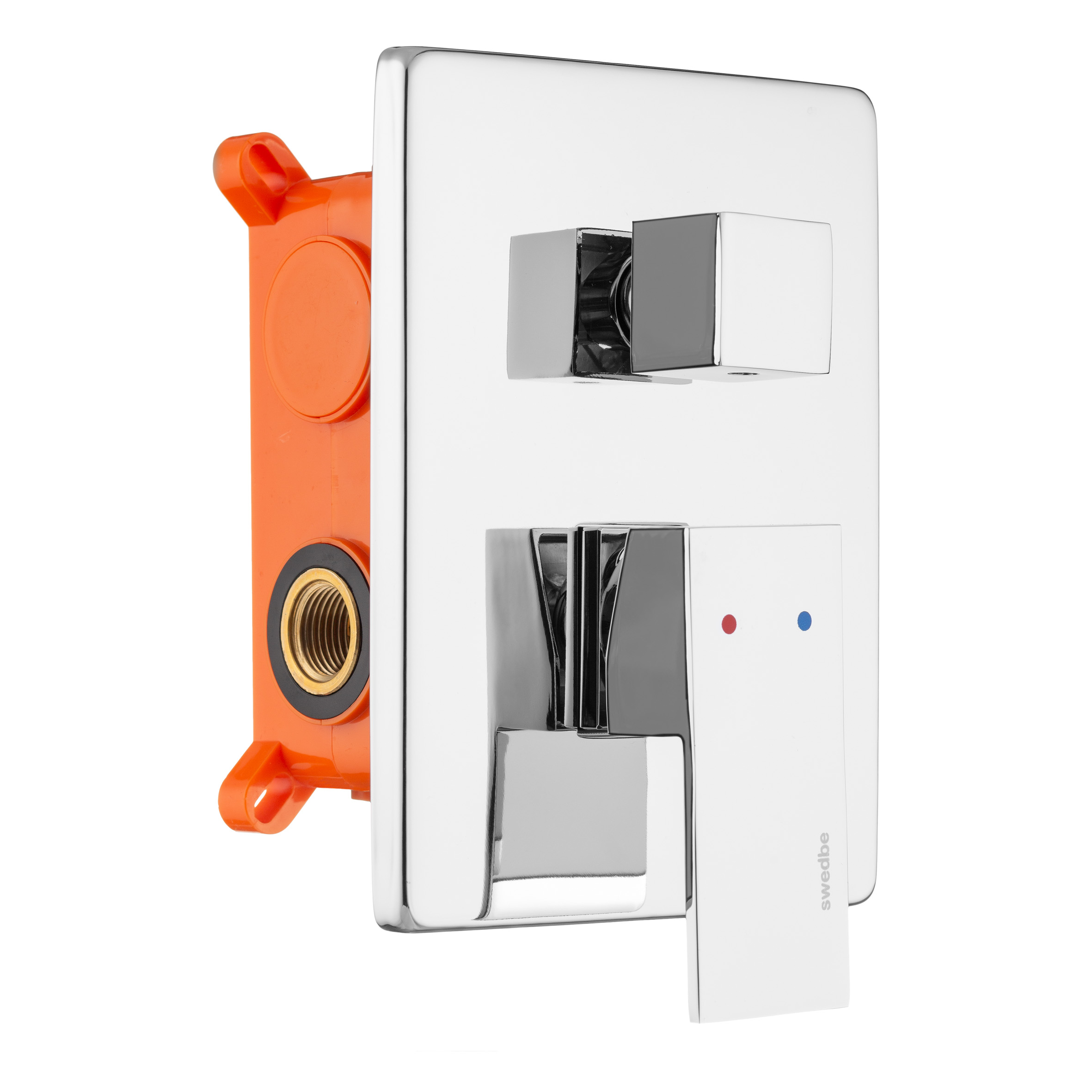 Смеситель для душа встраиваемый Swedbe Platta подключение на 3 выхода в монтажном боксе хром (5520)