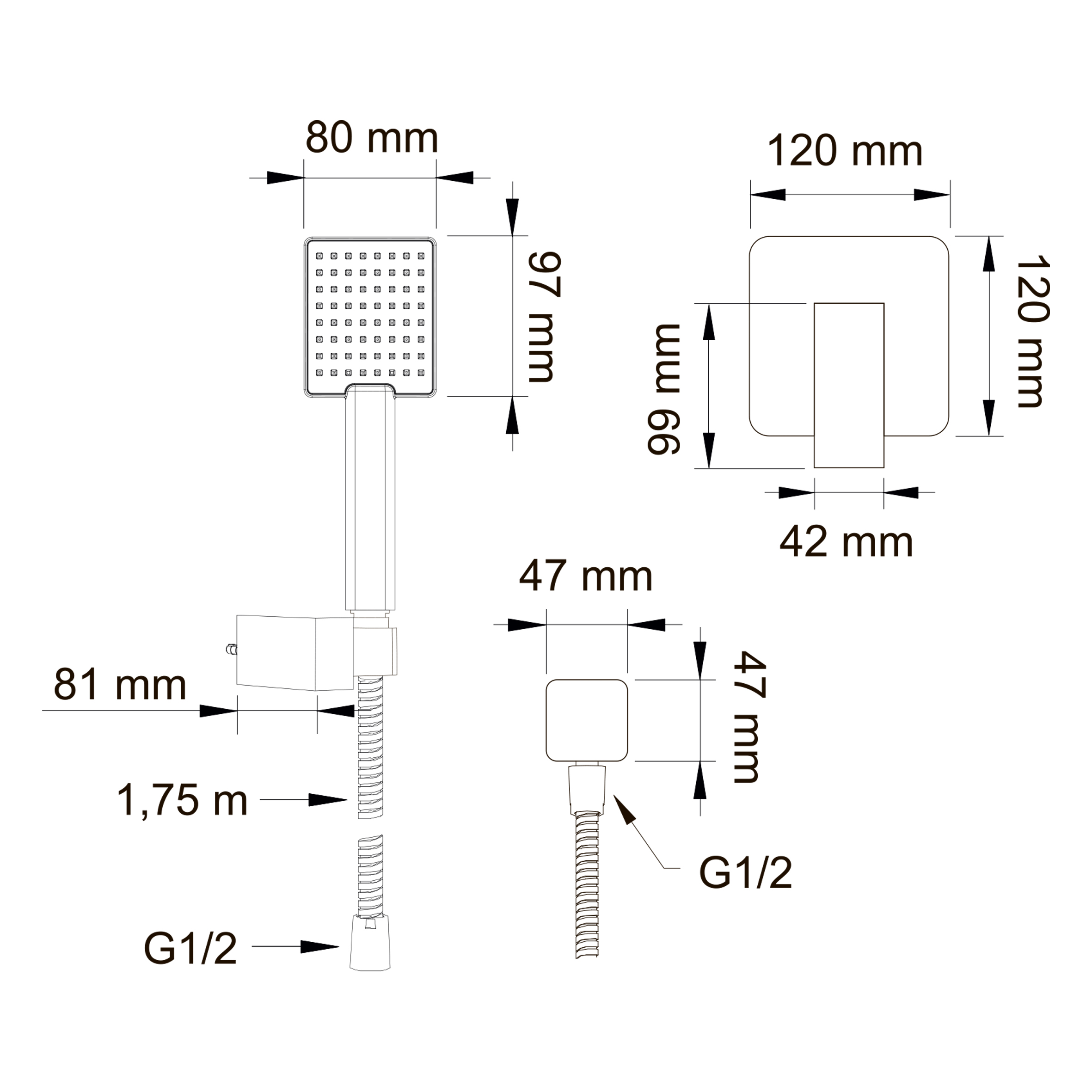 Смеситель для душа встраиваемый Swedbe Platta с душевым комплектом хром (5534)
