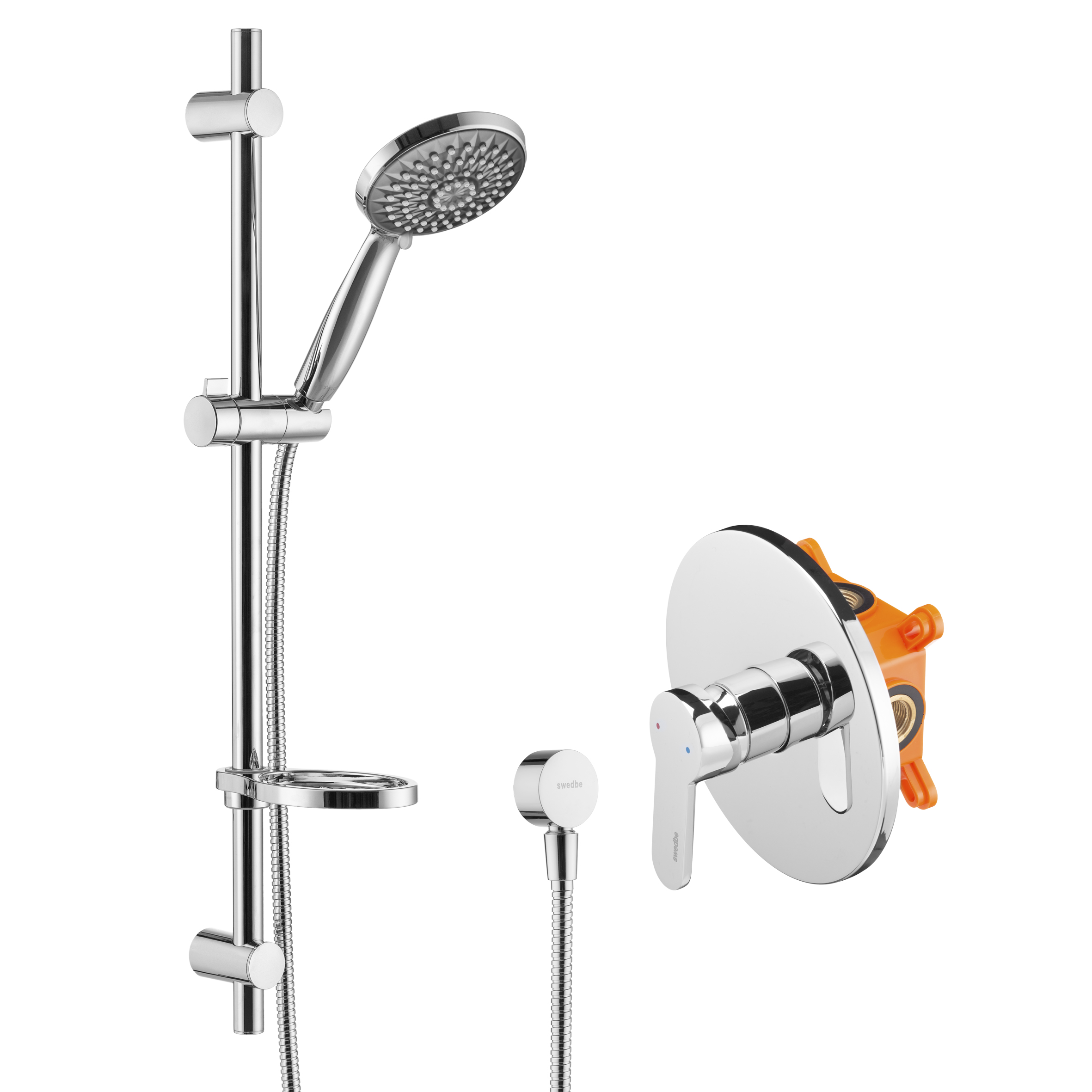Смеситель для душа встраиваемый Swedbe Platta с монтажным боксом хром, серый (5528G1)