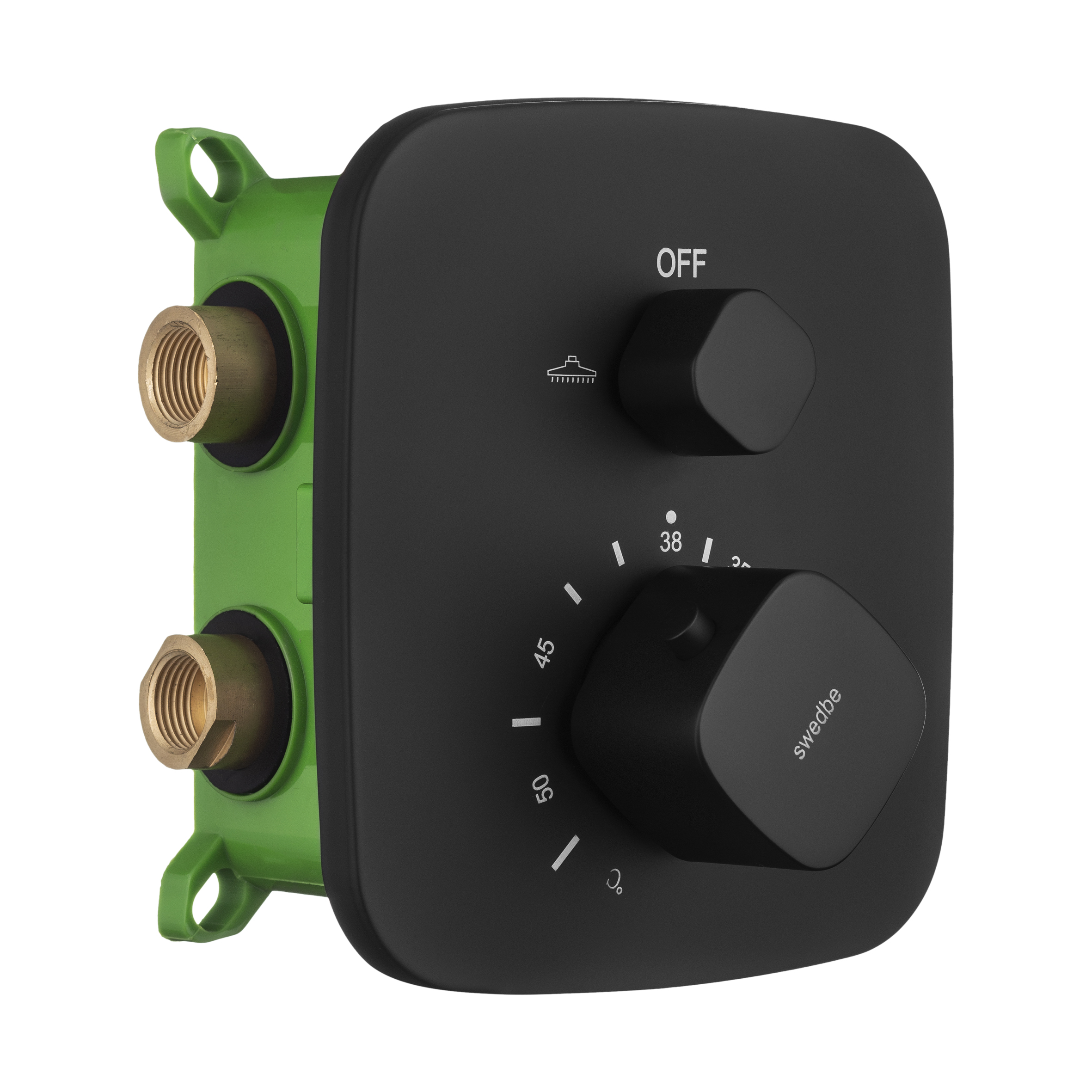 Смеситель для душа Встраиваемый Swedbe Platta термостат подключение на 2 выхода в монтажном боксе черный (9031B)