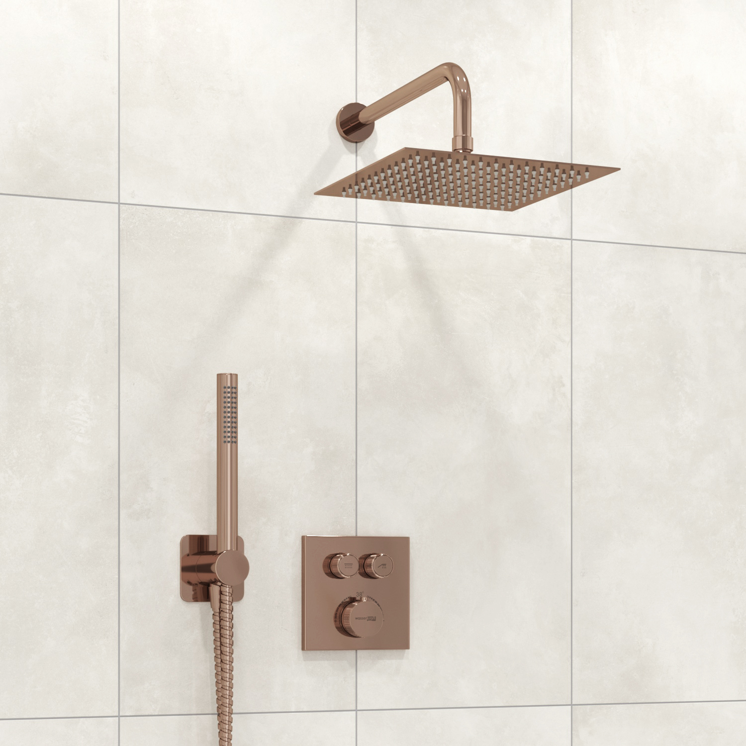 Смеситель для душа встраиваемый Thermo с верхней душевой насадкой и лейкой WasserKRAFT розовое золото (A7748.338.329.290.292.291 Thermo)