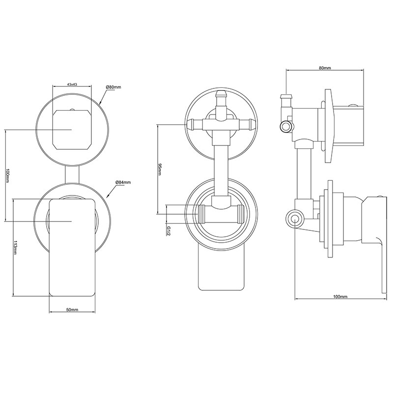 Смеситель для комплектации душевых кабин встроенного монтажа с подключением к 3 источникам потребления воды.