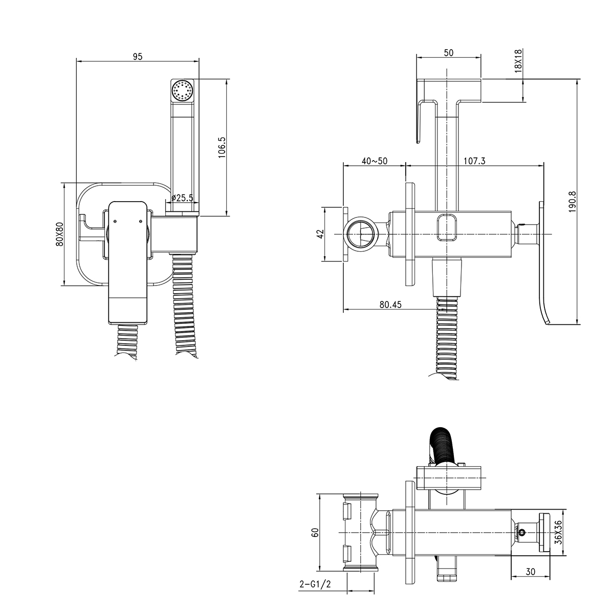 Встраиваемый смеситель с гигиеническим душем, латунь/хром/белый