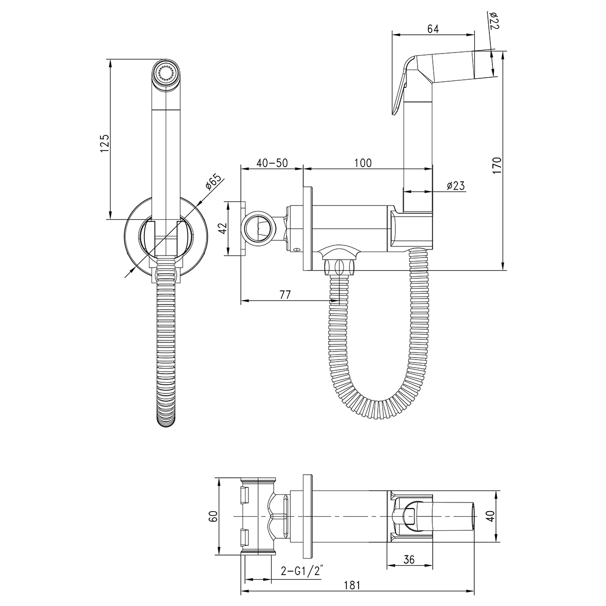 Встраиваемый смеситель с гигиеническим душем, латунь/хром