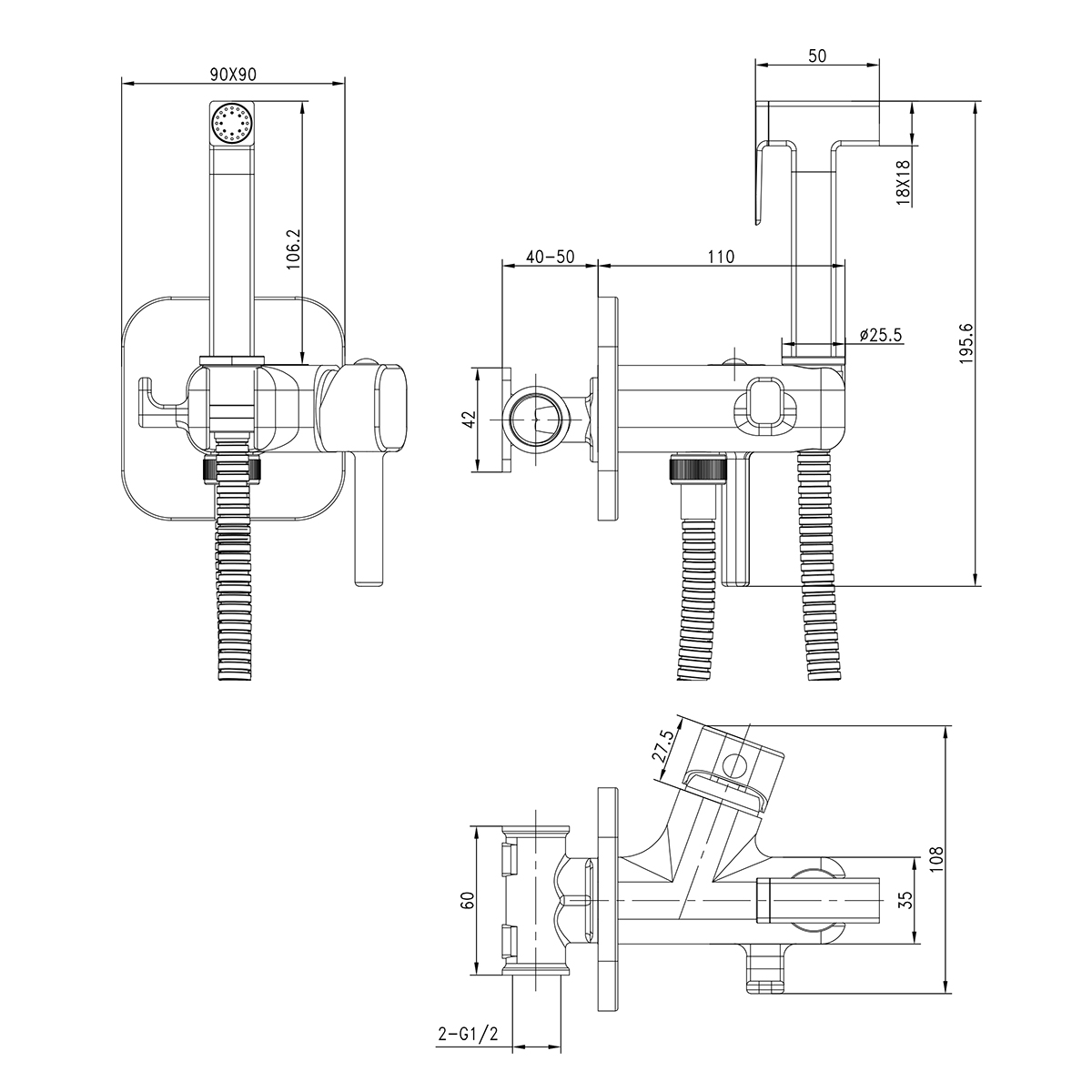 Встраиваемый смеситель с гигиеническим душем, латунь/хром