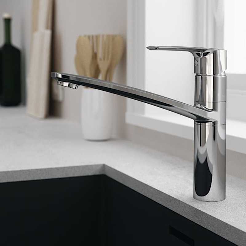 - Разработан с учетом ваших потребностей и особенностей различных пространств. Высокий излив смесителя для кухни Gem идеально подойдет для любой раковины поможет вам с легкостью справится с такими задачами как наполнение больших емкостей.