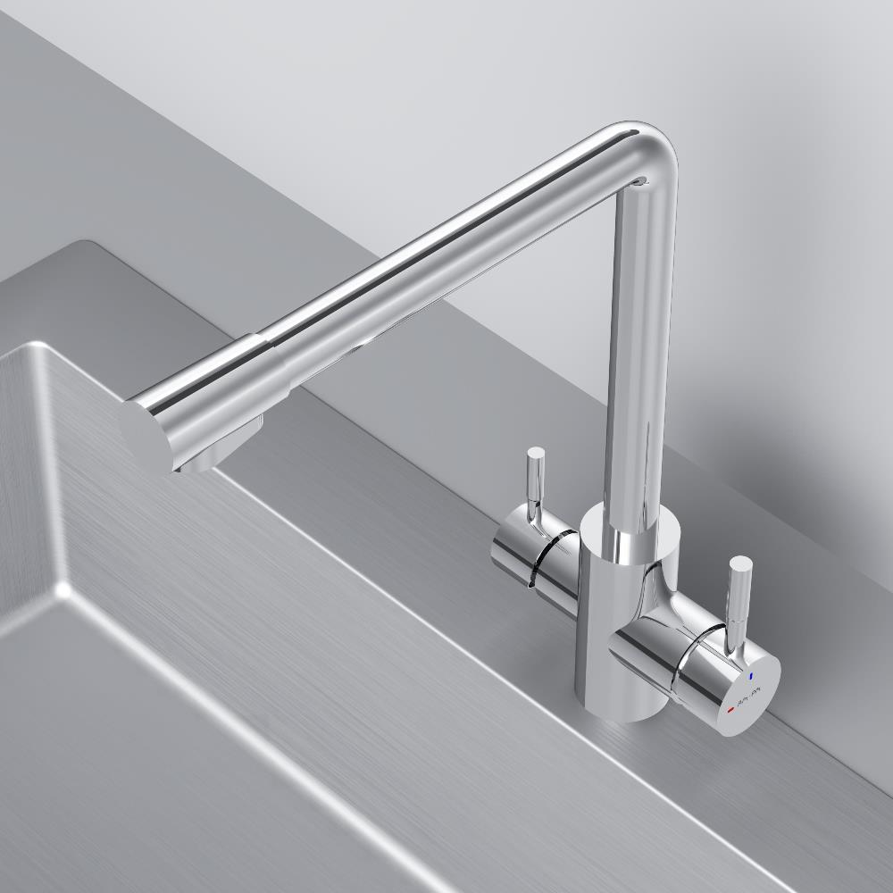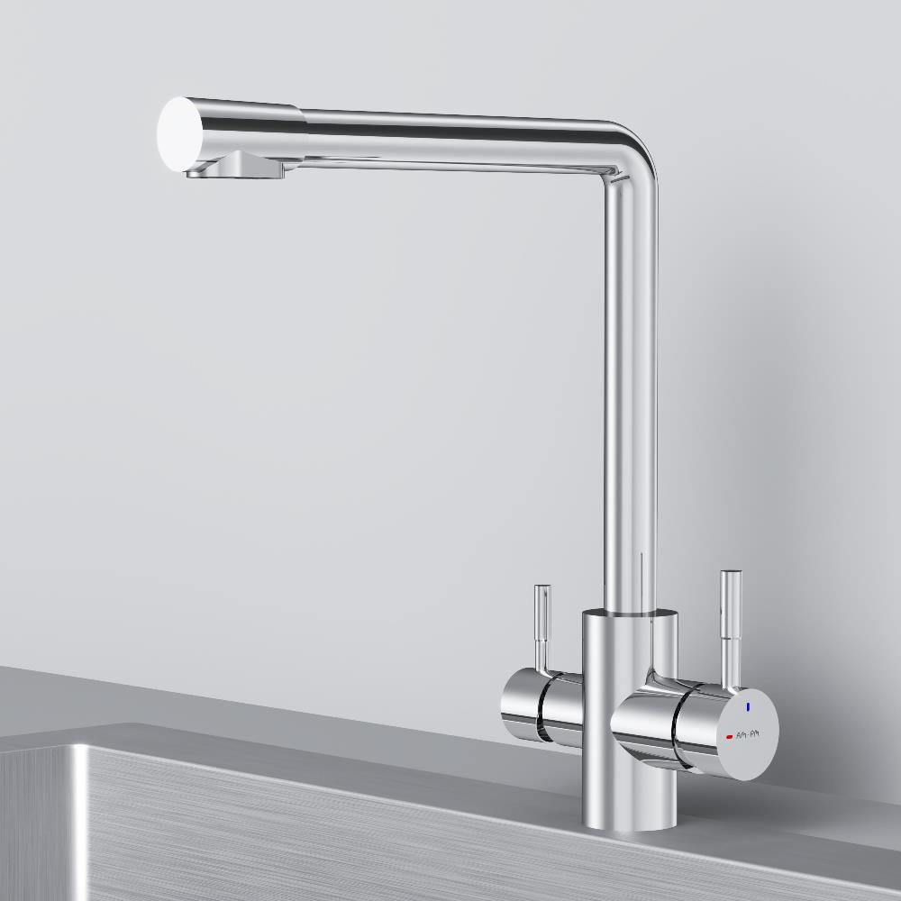 Смеситель оснащен встроенным каналом для питьевой воды. Для получения питьевой воды воспользуйтесь ручкой расположенной с левой стороны корпуса для получения обычной воды просто управляйте смесителем привычным способом.