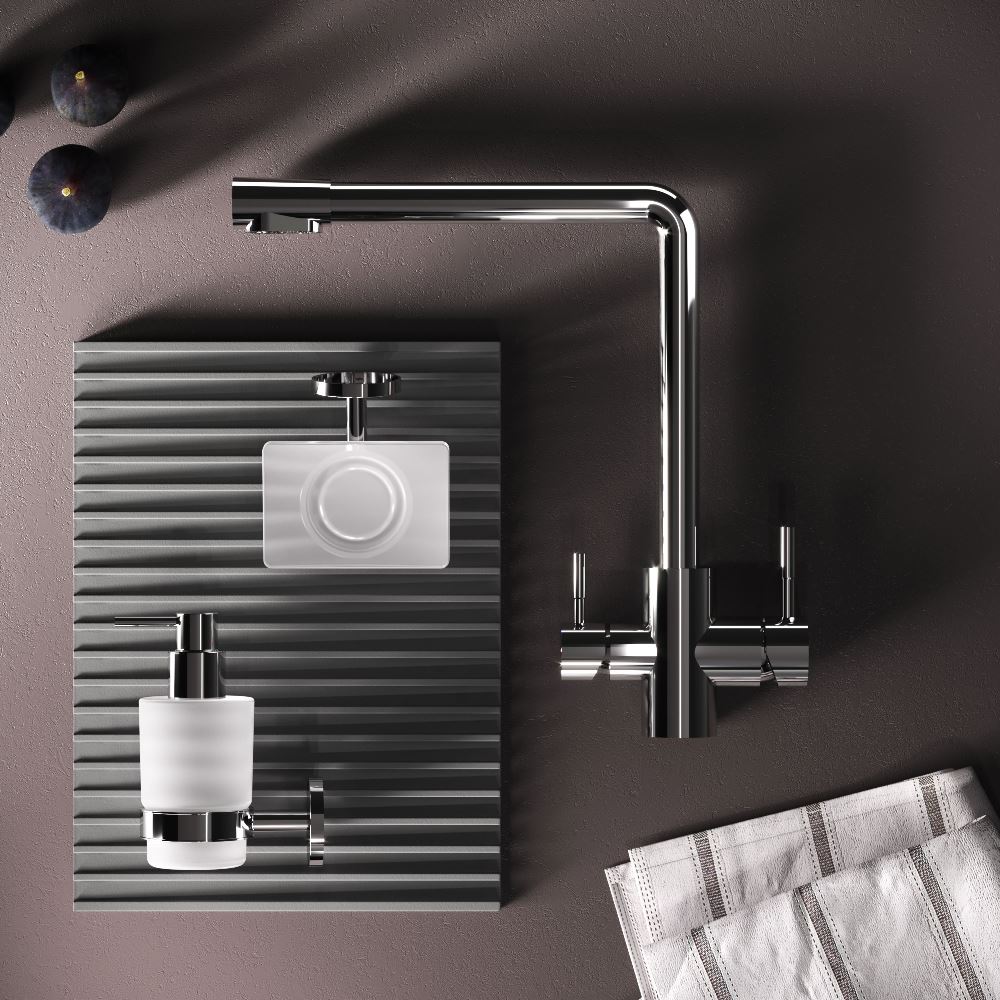 Эксклюзивное покрытие Everlast – вдвое превышает отраслевые стандарты по прочности и износостойкости. Ювелирный блеск и прочность покрытия достигаются по стандарту Chrome plating standard NSS 80H. L-образная архитектура смесителя идеально подойдет для использования с мойкой любого размера и значительно упростит такие задачи как наполнение больших емкостей.