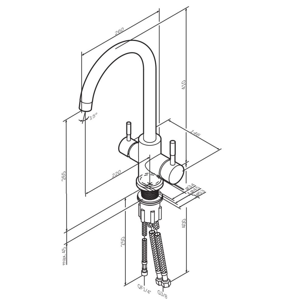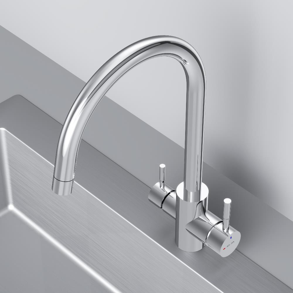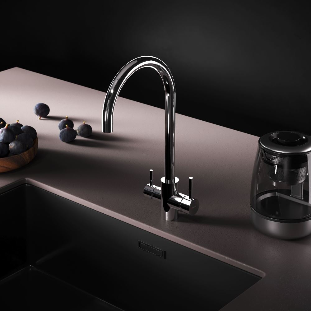 Cмеситель оснащен встроенным каналом для питьевой воды. Для получения питьевой воды воспользуйтесь ручкой расположенной с левой стороны корпуса для получения обычной воды просто управляйте смесителем привычным способом.