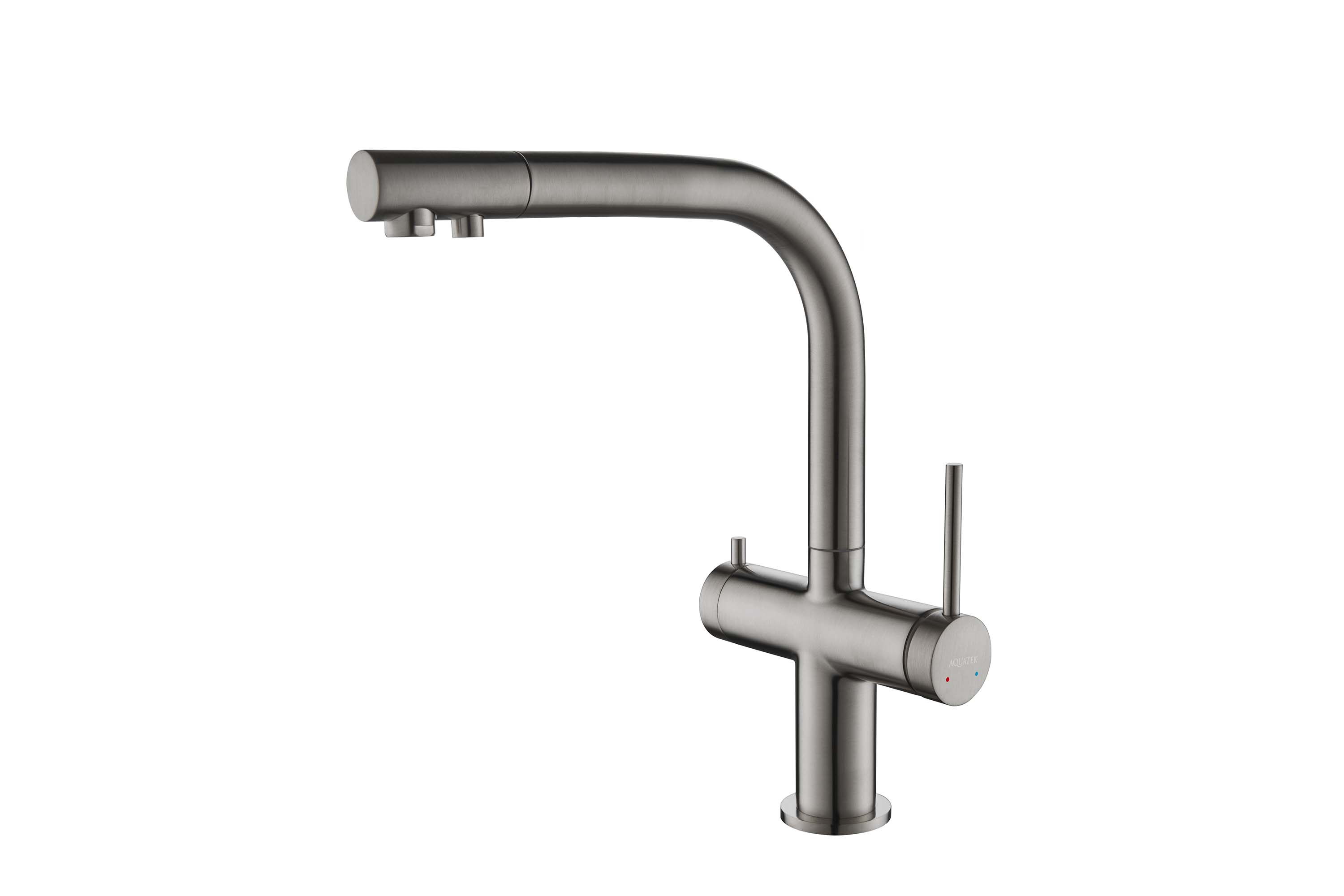 Смеситель для кухни Aquatek Европа с подключением к фильтру питьевой воды шлифованный черный хром (AQ1385BGM)