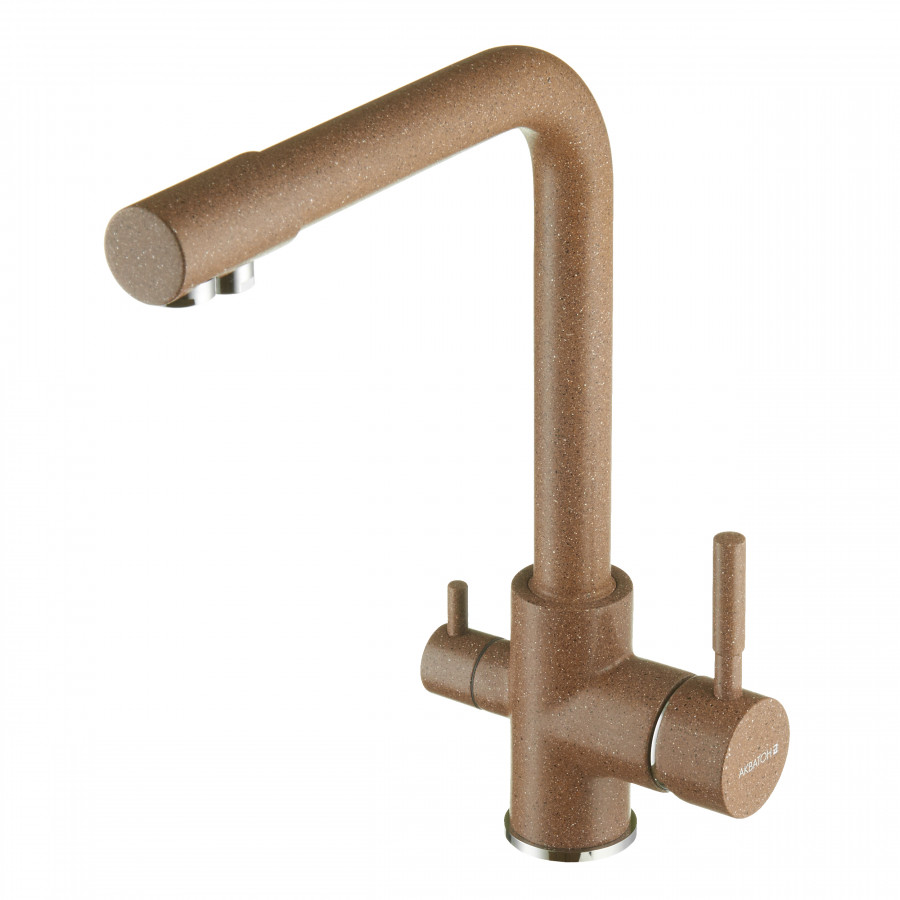 Смеситель Руан для кухонной мойки от компании Акватон. Подключение к фильтру пиьевой воды. Совмещенный излив. Цвет смесителя специально подобран в соответствии с цветом кухонных моек Акватон из литьевого камня. Корпус смесителя выполнен из латуни, что гарантирует долгий срок эксплуатации изделия, сопротивление коррозии и безопасность для человека. Декоративное цветное покрытие отличается высокой силой сцепления с поверхностью смесителя, обеспечивая устойчивость к царапинам и сколам.