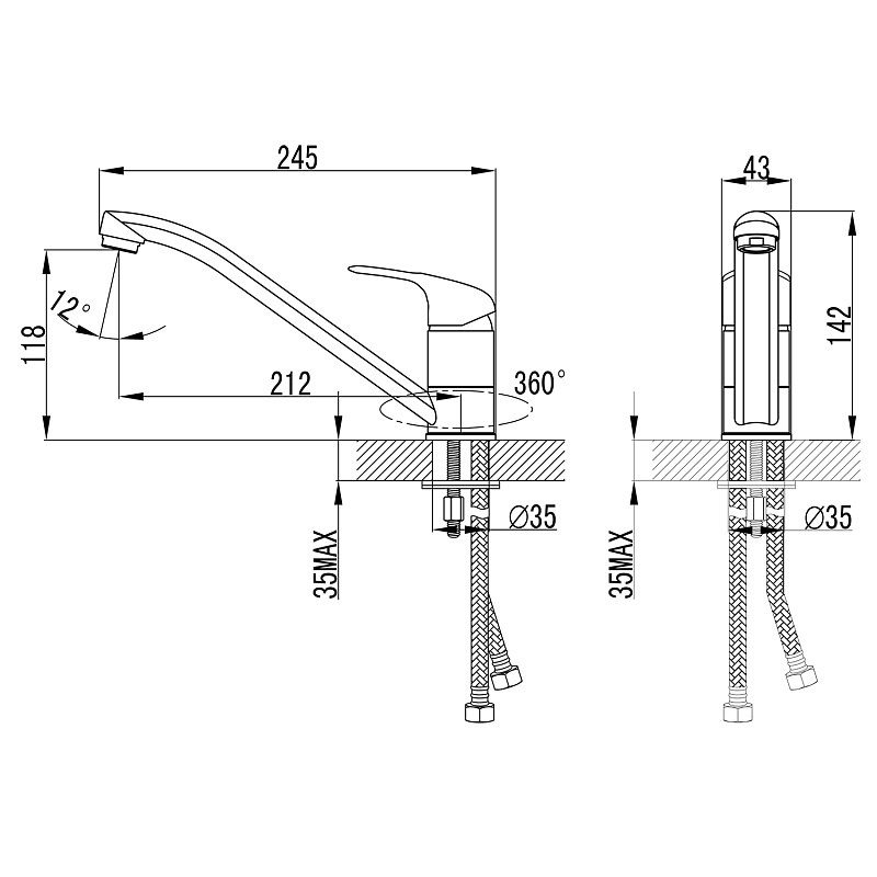 Смеситель для кухни Azario хром (AZ-HU245896)