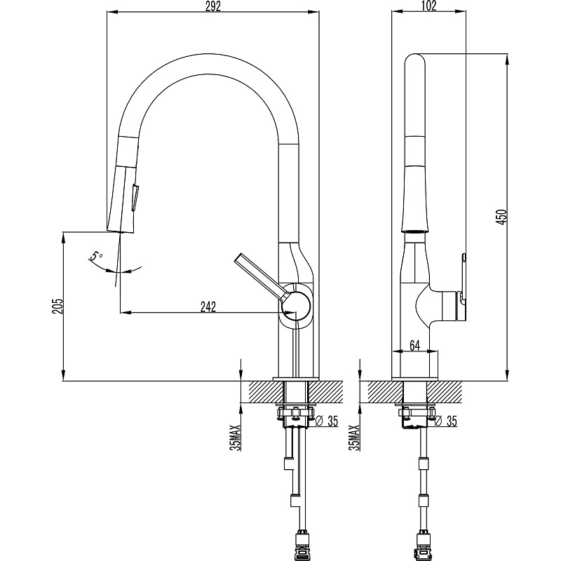 Смеситель для кухни Azario Vincente черный (AZ-VPV569064PA)