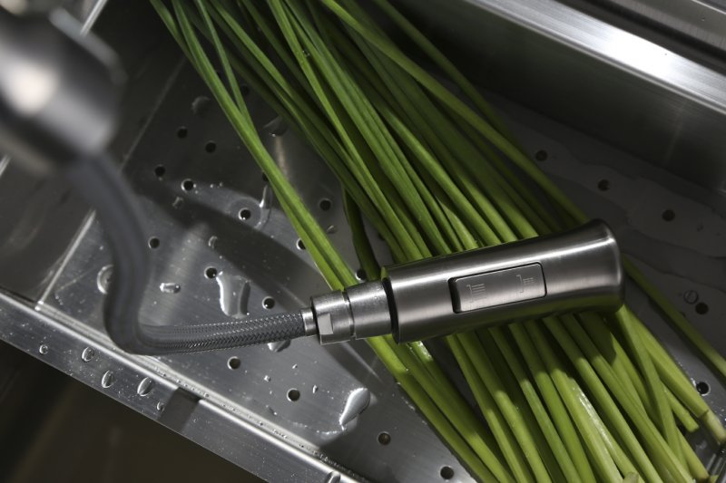 Состав поставки: смеситель, крепления, ручной выдвижной душ, гибкая подводка