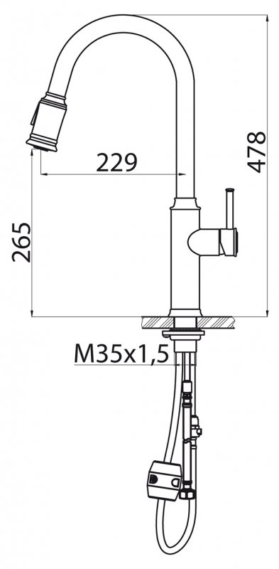Высота излива (мм): 265