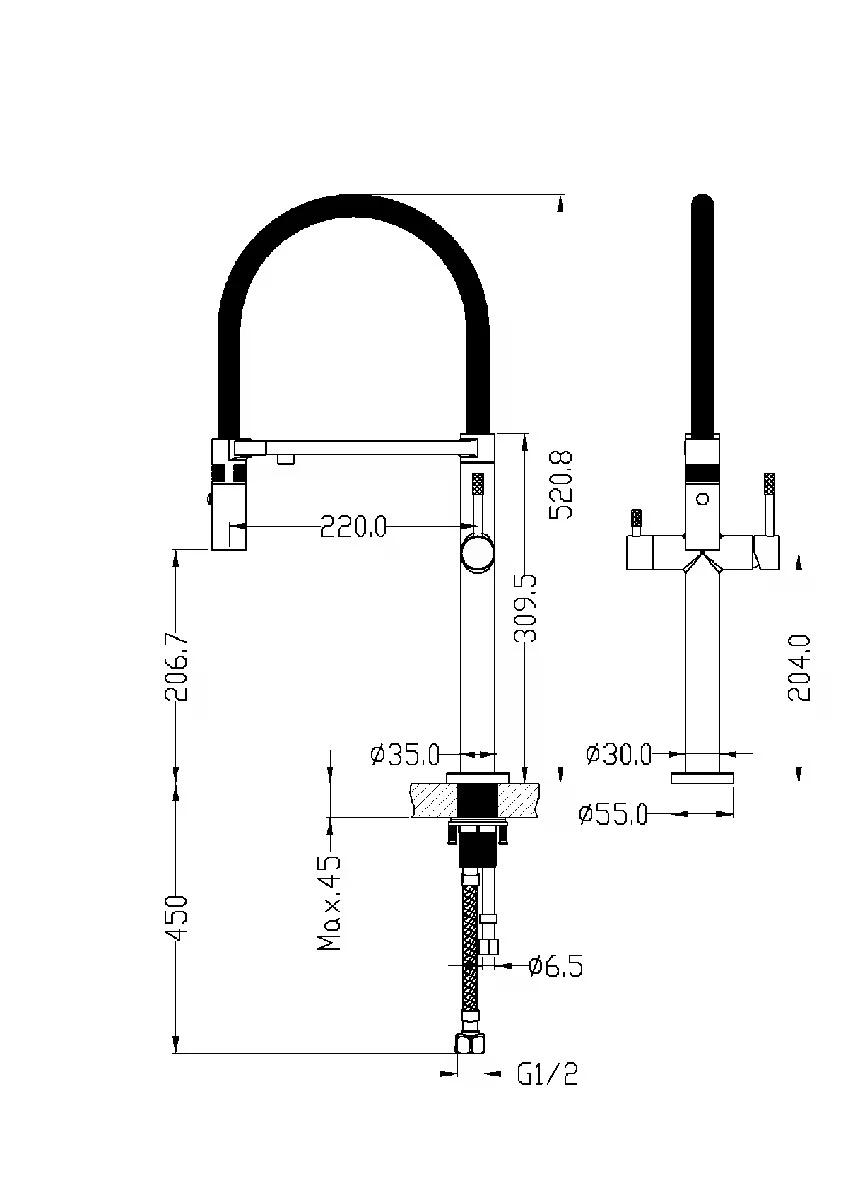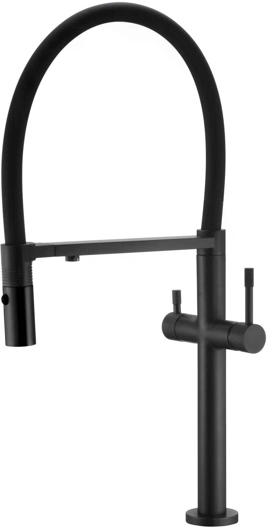 Смеситель для кухни Boheme Kitchen Черный с краном для питьевой воды с гибким изливом (115-B)