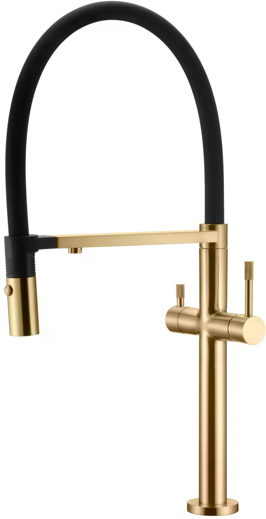 Смеситель для кухни Boheme Kitchen Золотой с краном для питьевой воды с гибким изливом (115-MG)
