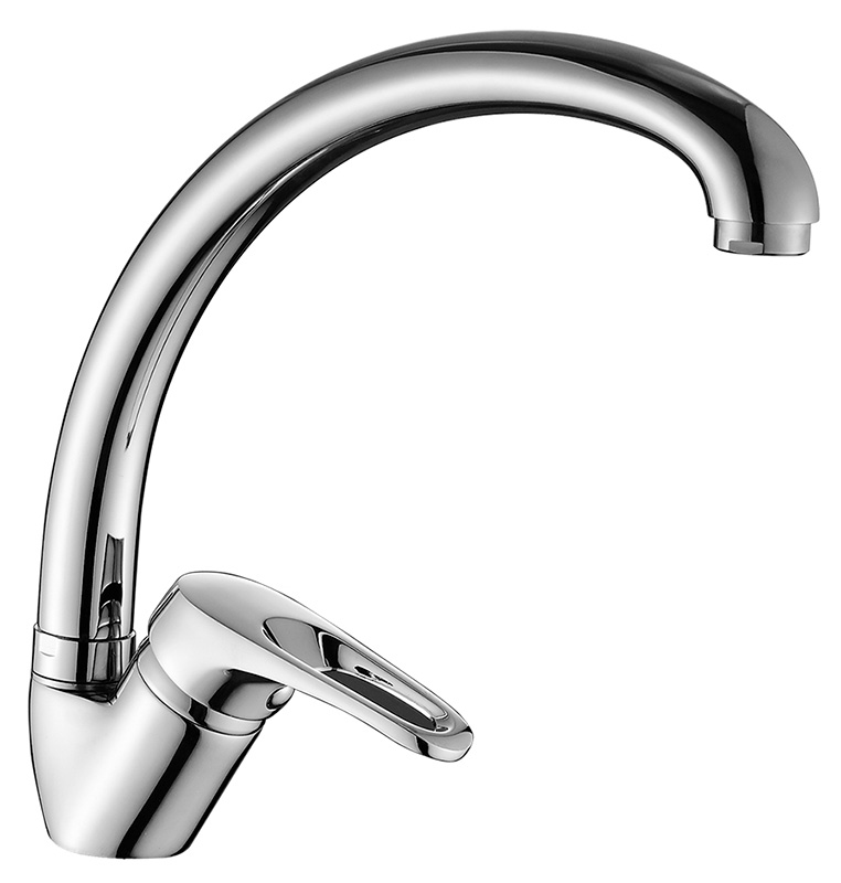 Смеситель для кухни с высоким поворотным изливом, высота излива 20 см, длина 20 см, хром