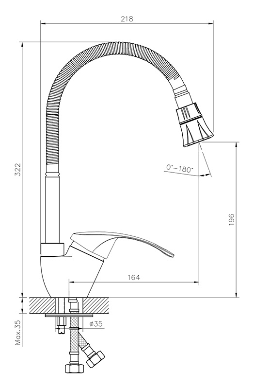 Смеситель для кухни с гибким изливом, высота излива 20 см, длина 16 см, хром