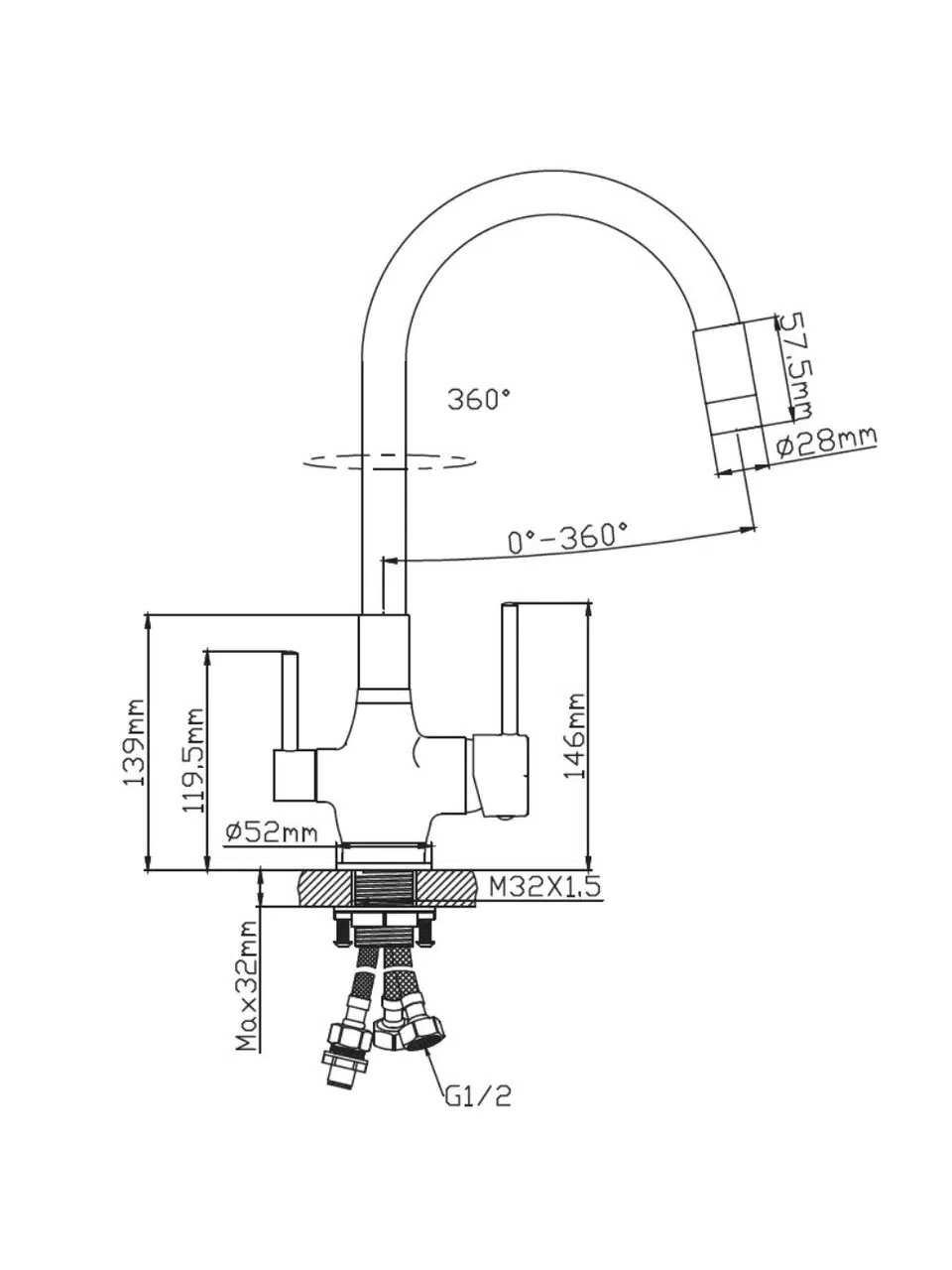 Смеситель для кухни Diadonna (с подключением фильтра гибкий излив черный) (D49-19027BL)