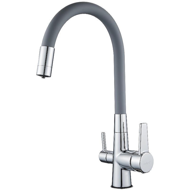 Смеситель для кухни Dlin с гибким изливом, переключатель на фильтр хром (D159317-2)