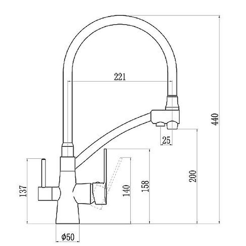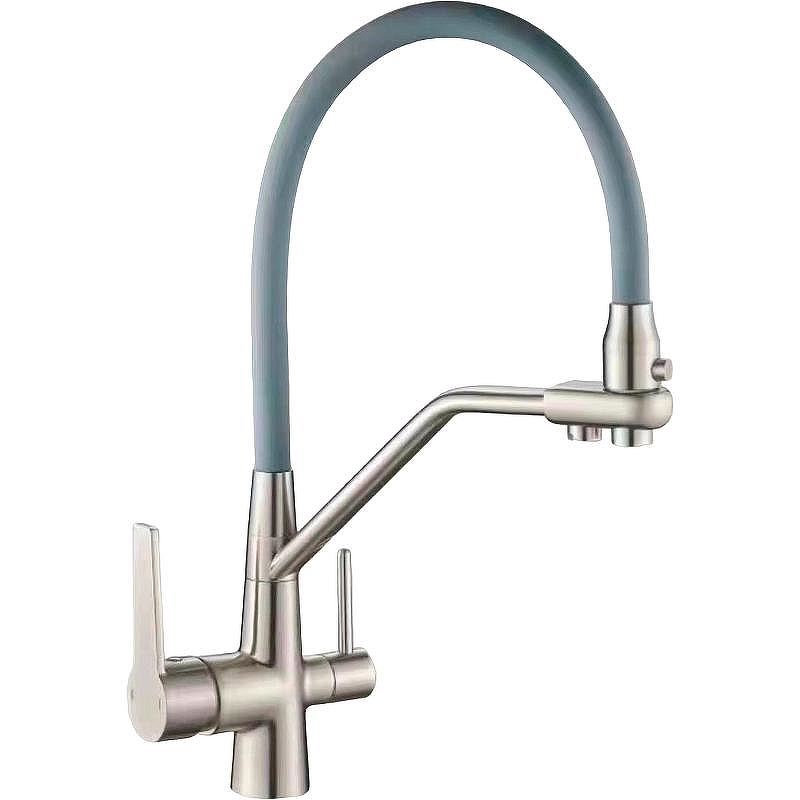 Смеситель для кухни Dlin с гибким изливом, переключатель на фильтр серый (H159317)
