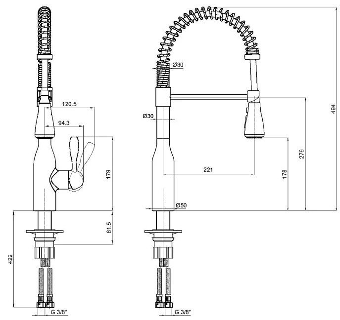 Смеситель для кухни E.C.A. Flux с выдвижным изливом хром (406218019EX)