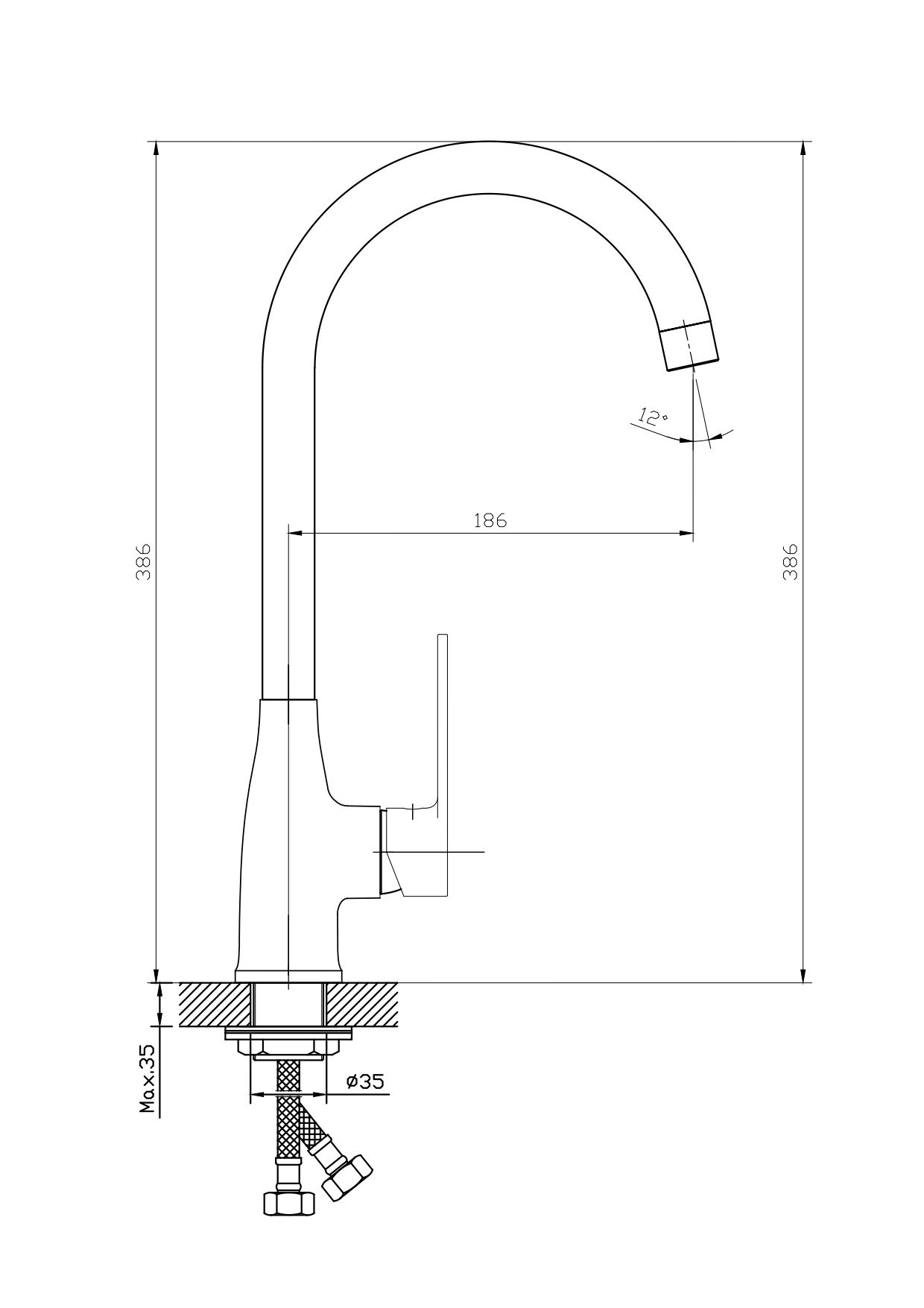 Излив: поворотный, 360 градусов