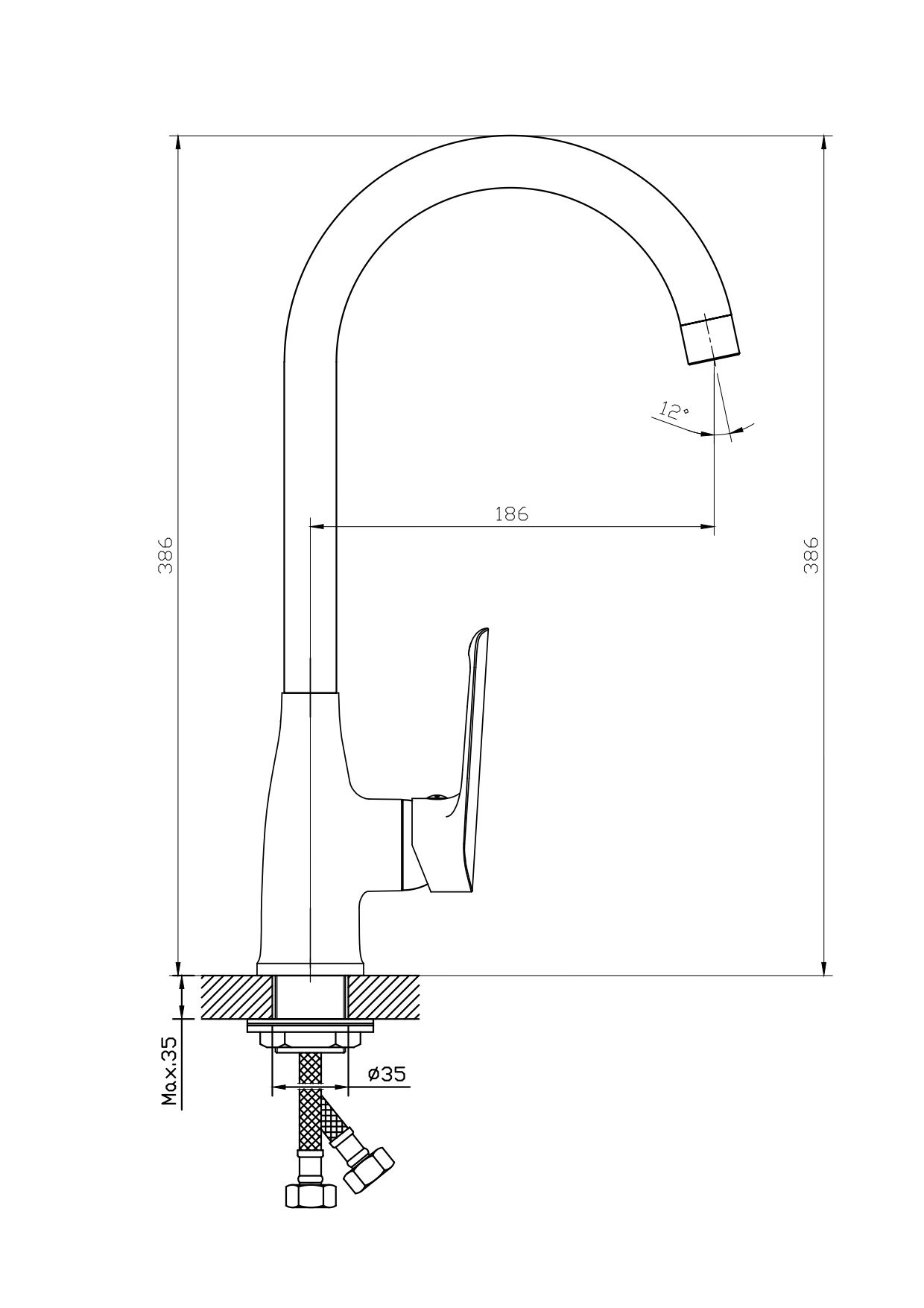 Излив: поворотный, 360 градусов
