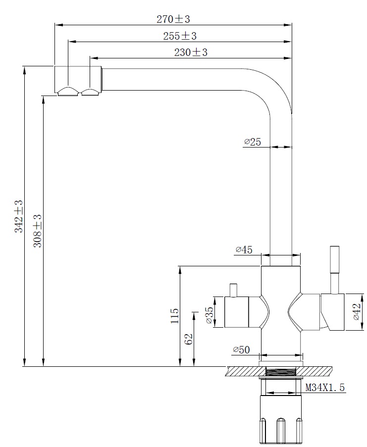 Корпус: нержавеющая сталь, марка SUS 304 (пищевая сталь), канал для фильтрованной воды с отдельным аэратором