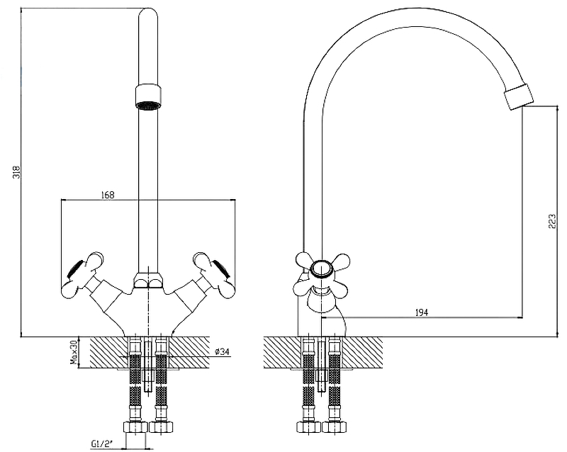 Комплектация: ребро жесткости, крепление "шпилька", гибкая подводка 35 см