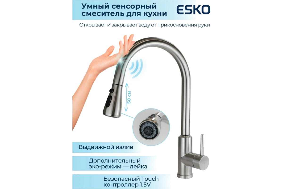 Смеситель для кухни Esko вытяжной излив хром (TSS 519)