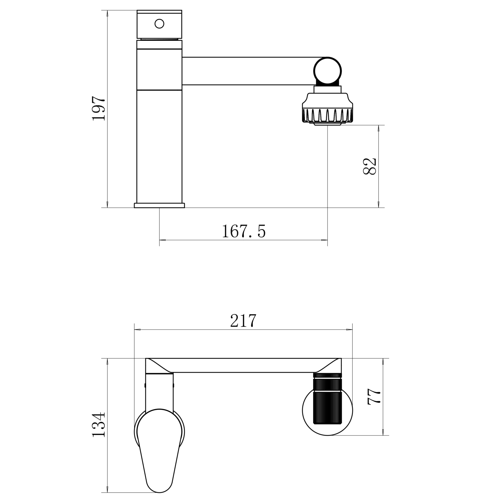 излив поворотный с подвижной насадкой 2 режима 360°, H=82-150 мм