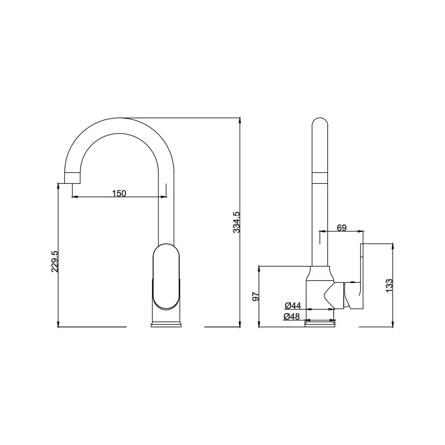 излив H=230 мм