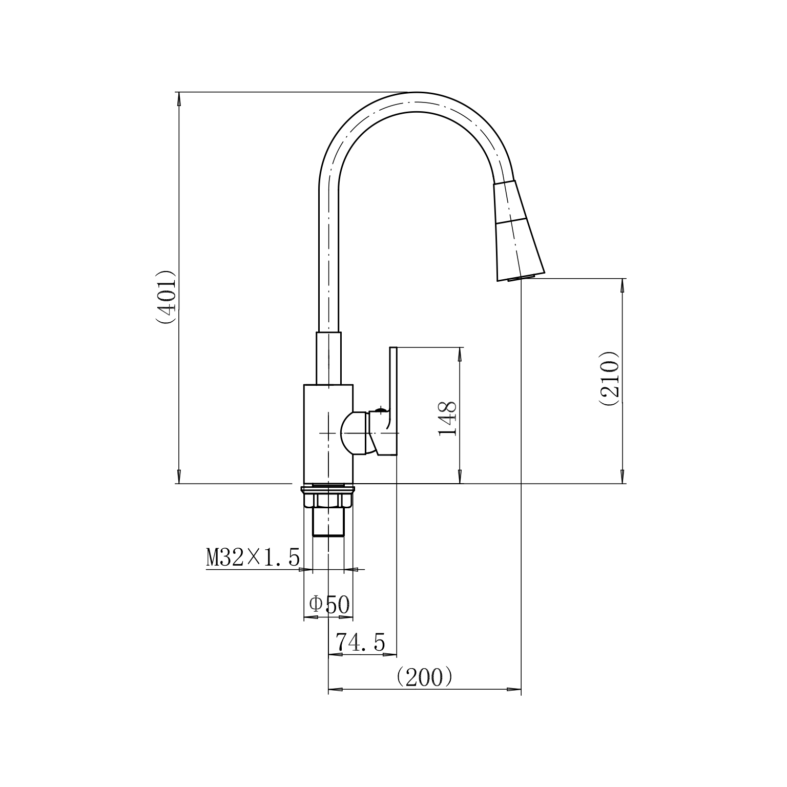 смеситель для кухни с гибким изливом, H=401 мм