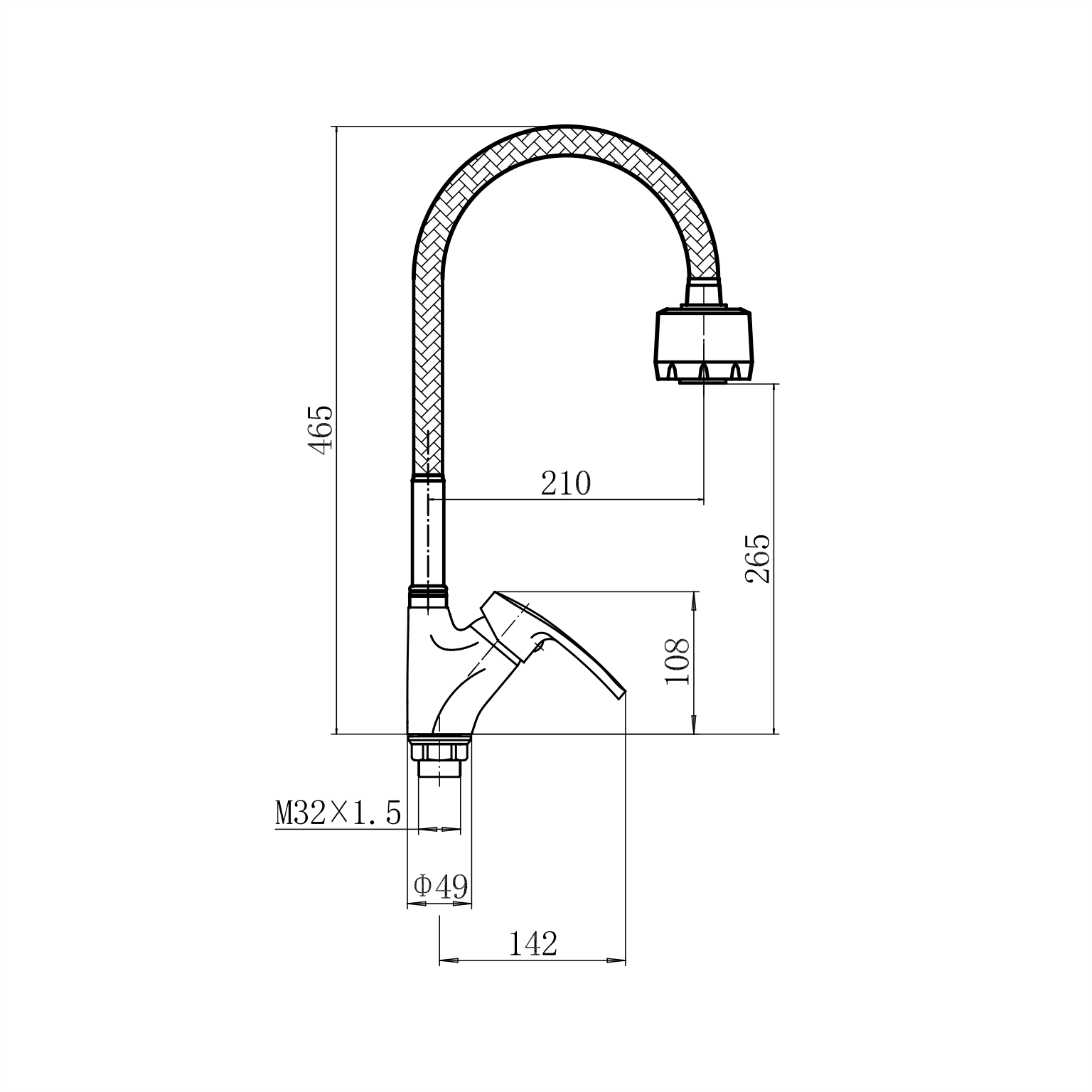 смеситель для кухни с гибким изливом, H=465 мм